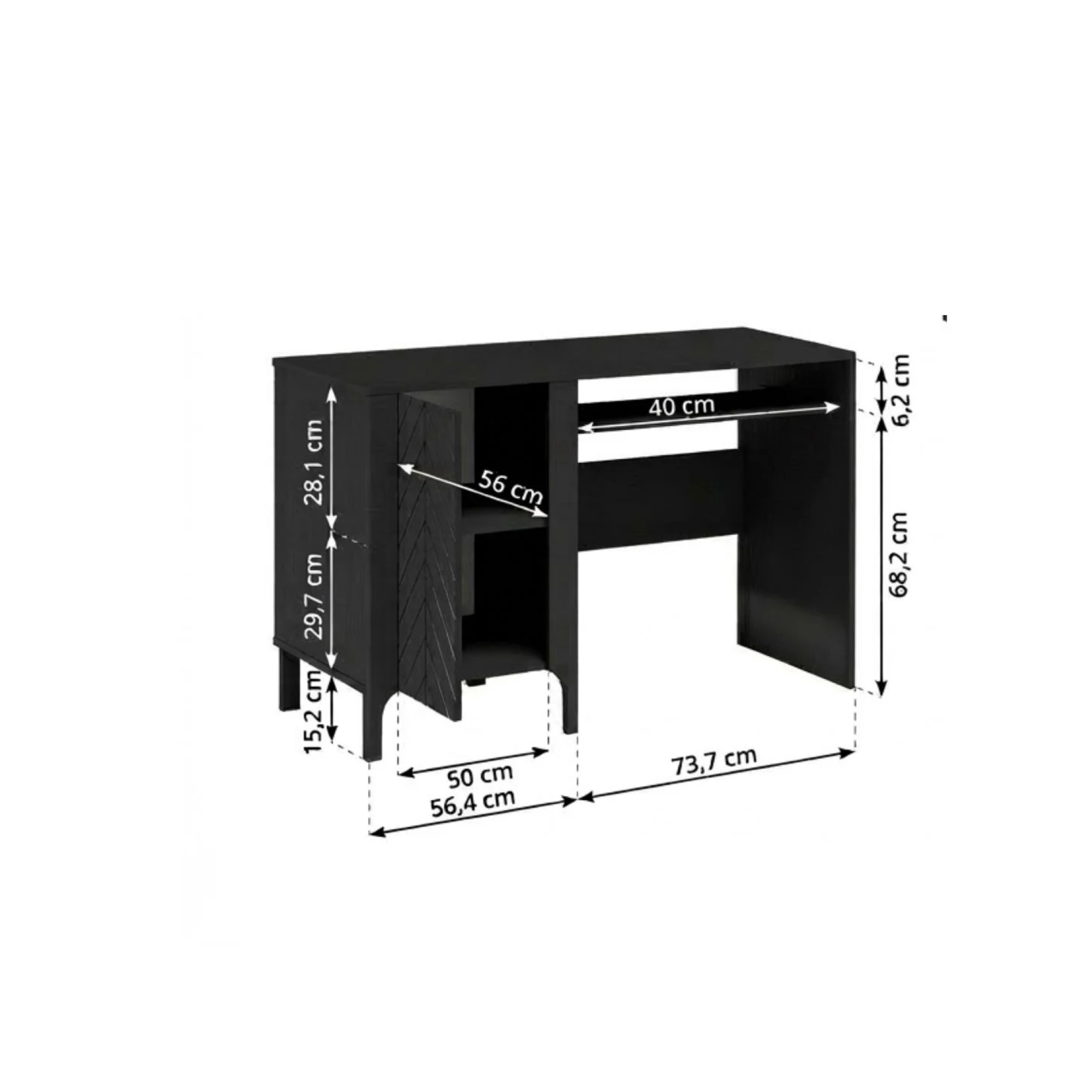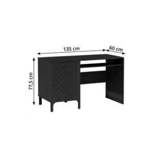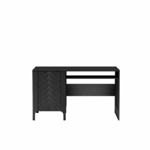 Wyposażone w praktyczną szafkę z półką, która ułatwia przechowywanie dokumentów i akcesoriów. Front z dekoracyjną jodełką nadaje meblowi eleganckiego charakteru. Prosty design i solidne wykonanie sprawiają, że biurko doskonale łączy styl z wygodą codziennej pracy.