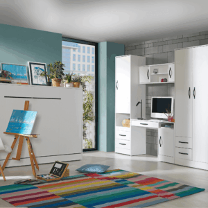 Kolekcja ASTON pozwala na kompleksowe urządzenie wnętrza. W jej skład wchodzą funkcjonalne półkotapczany, pojemna szafa, komoda, regał, praktyczne biurko, stolik nocny oraz półki, które razem tworzą spójną i nowoczesną aranżację.