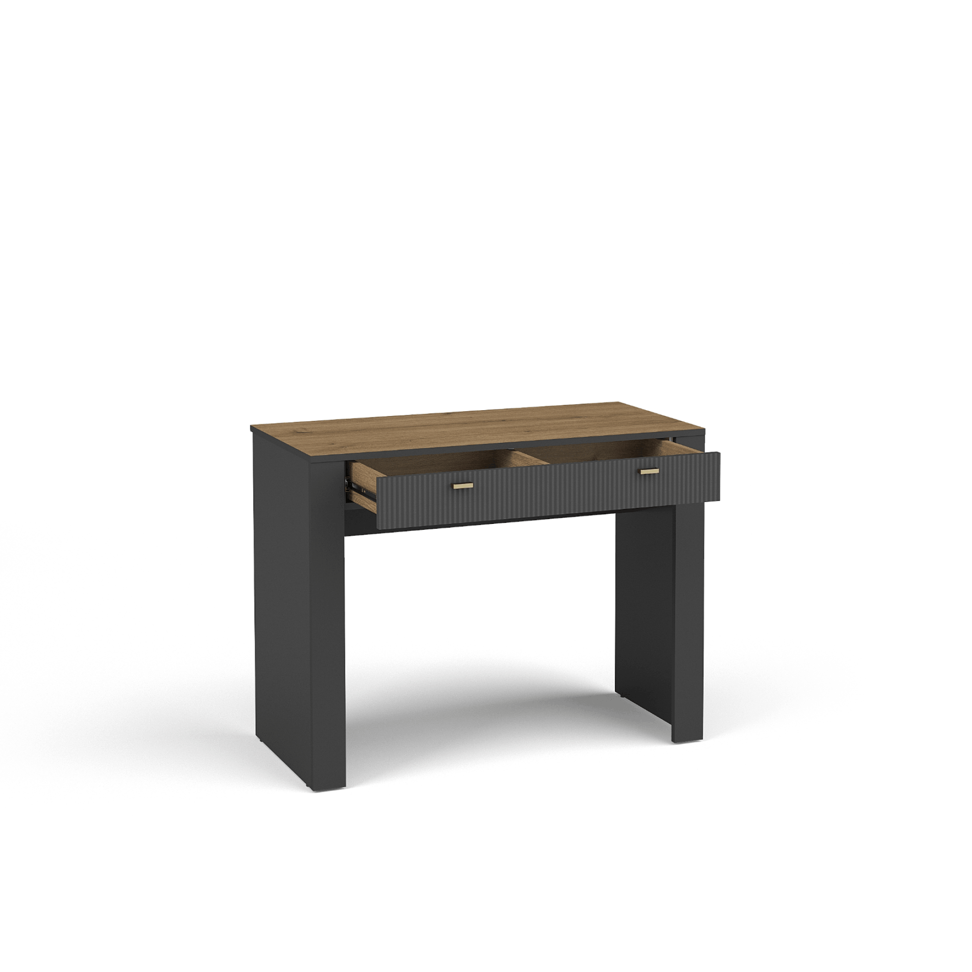 Kolekcja Naro to nowoczesna linia mebli, która wyróżnia się eleganckim designem i wysoką funkcjonalnością, idealnie pasującą do salonu, pokoju dziennego czy sypialni. Charakterystycznym elementem tej kolekcji są wysokie nóżki, gustowne uchwyty oraz proste, masywne bryły dostępne w kolorze bieli, czerni i kaszmiru, wzbogacone o akcenty w odcieniu dębu wiskey. Efekt 3D, nadawany przez prążkowane fronty, podkreśla nowoczesność i styl mebli. Bogaty wybór elementów, takich jak komody, witryny, szafy, regały, ławy, stoliki nocne oraz szafki RTV, pozwala na indywidualne aranżacje wnętrz, dostosowane do potrzeb każdego pomieszczenia.