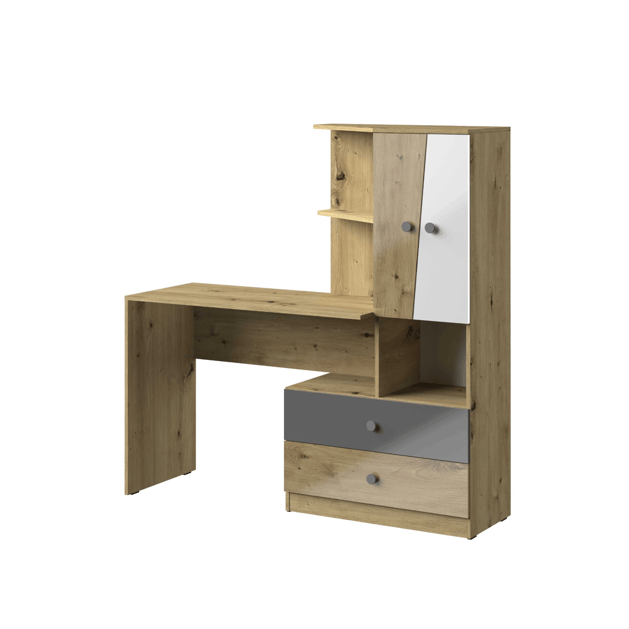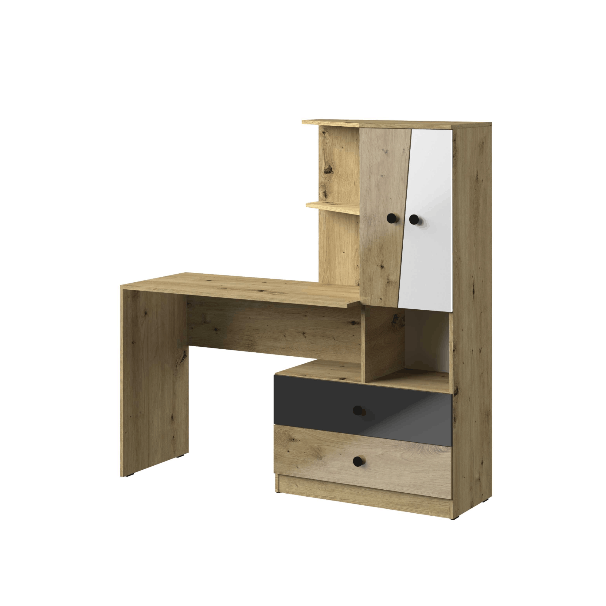 Kolekcja Argo to nowoczesne meble stworzone z myślą o funkcjonalności i estetyce. Proste, geometryczne bryły oraz modne połączenie dekoru drewna z gładkimi frontami sprawiają, że zestaw doskonale pasuje do salonu, pokoju młodzieżowego czy domowego biura.