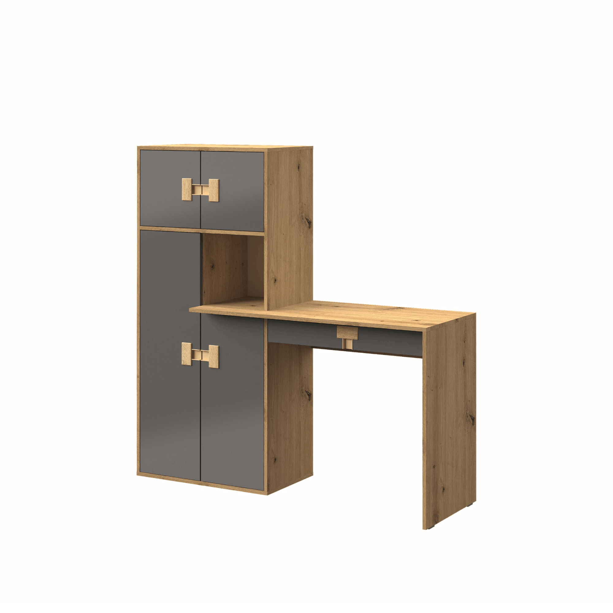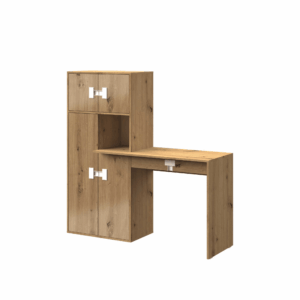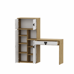 Przemyślany układ brył łączy otwarte półki z zamkniętymi szafkami, dzięki czemu możesz jednocześnie wyeksponować dekoracje i zachować porządek w przechowywanych przedmiotach. Kolekcja pozwala stworzyć spójną zabudowę dopasowaną do Twojej przestrzeni – zarówno w mniejszych, jak i większych pomieszczeniach.