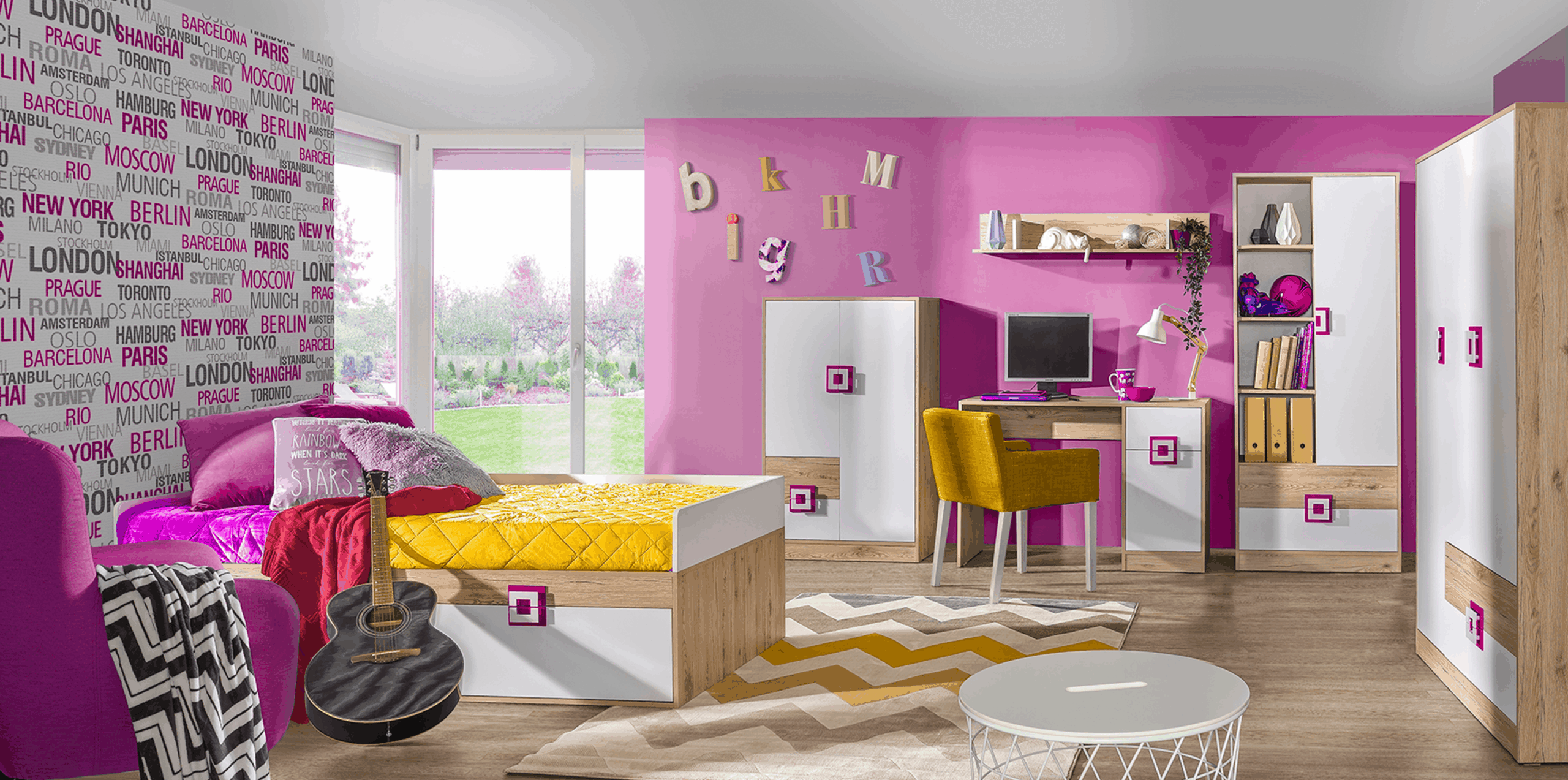 Kolekcja mebli Vamex to nowoczesne, młodzieżowe rozwiązanie w kolorach jasnego dębu, różu, szarości, turkusu i bieli, idealnie sprawdzające się w pokoju sypialnianym. Dzięki uniwersalnemu designowi, meble z tej kolekcji wprowadzą do wnętrza świeżość i styl, a ich funkcjonalność sprawia, że równie dobrze prezentują się także w innych pomieszczeniach.