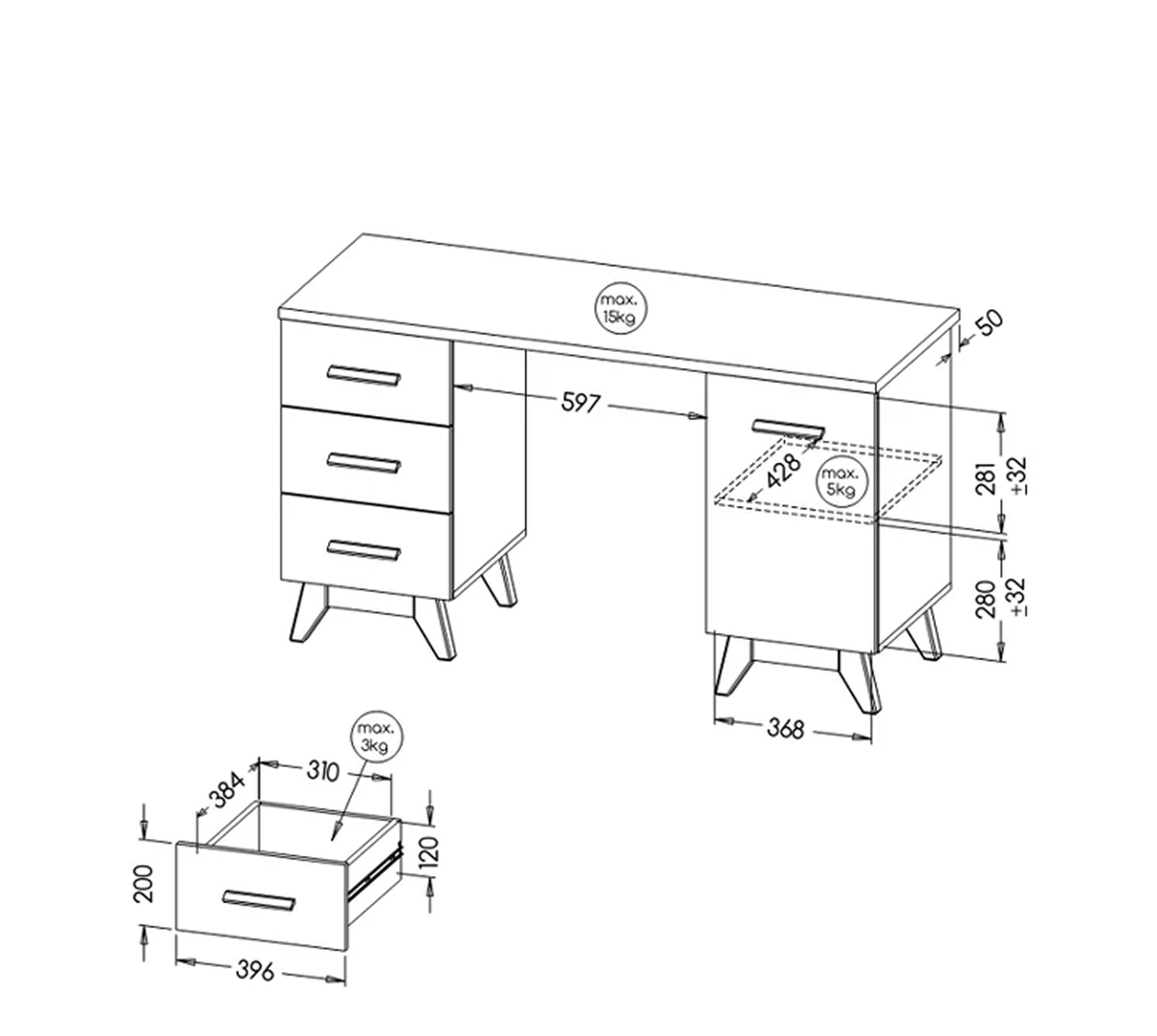 Drewniane nóżki i uchwyty, wykonane z naturalnego dębu i dopasowane kolorystycznie do blatów, dodają każdemu elementowi kolekcji wyjątkowego charakteru. Modułowy system Zink oferuje elastyczność w aranżacji różnych przestrzeni – od sypialni i pokojów młodzieżowych po salony i biura.