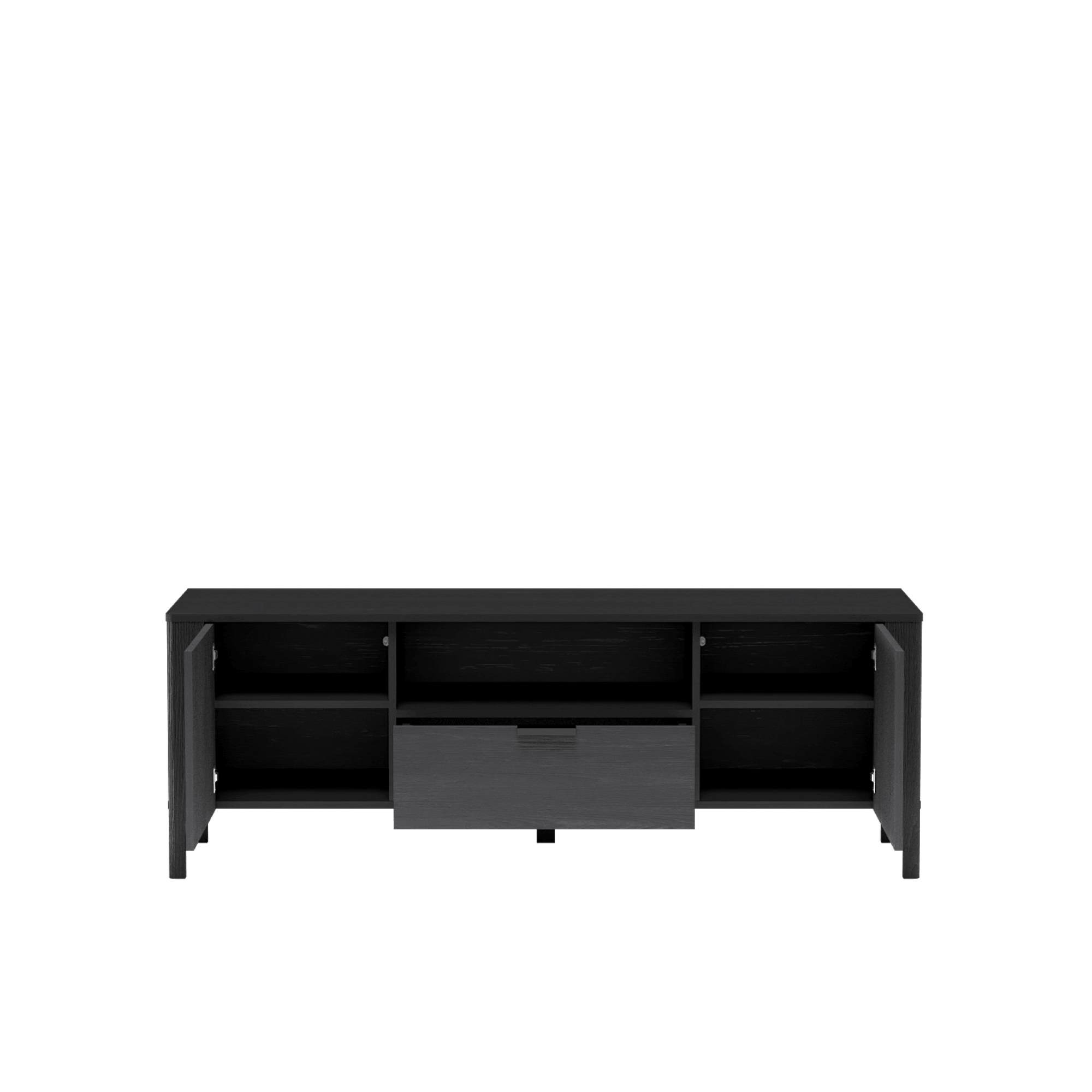 Duża Szafka RTV Montis w czarnym, matowym wykończeniu to nowoczesne i funkcjonalne rozwiązanie do salonu.