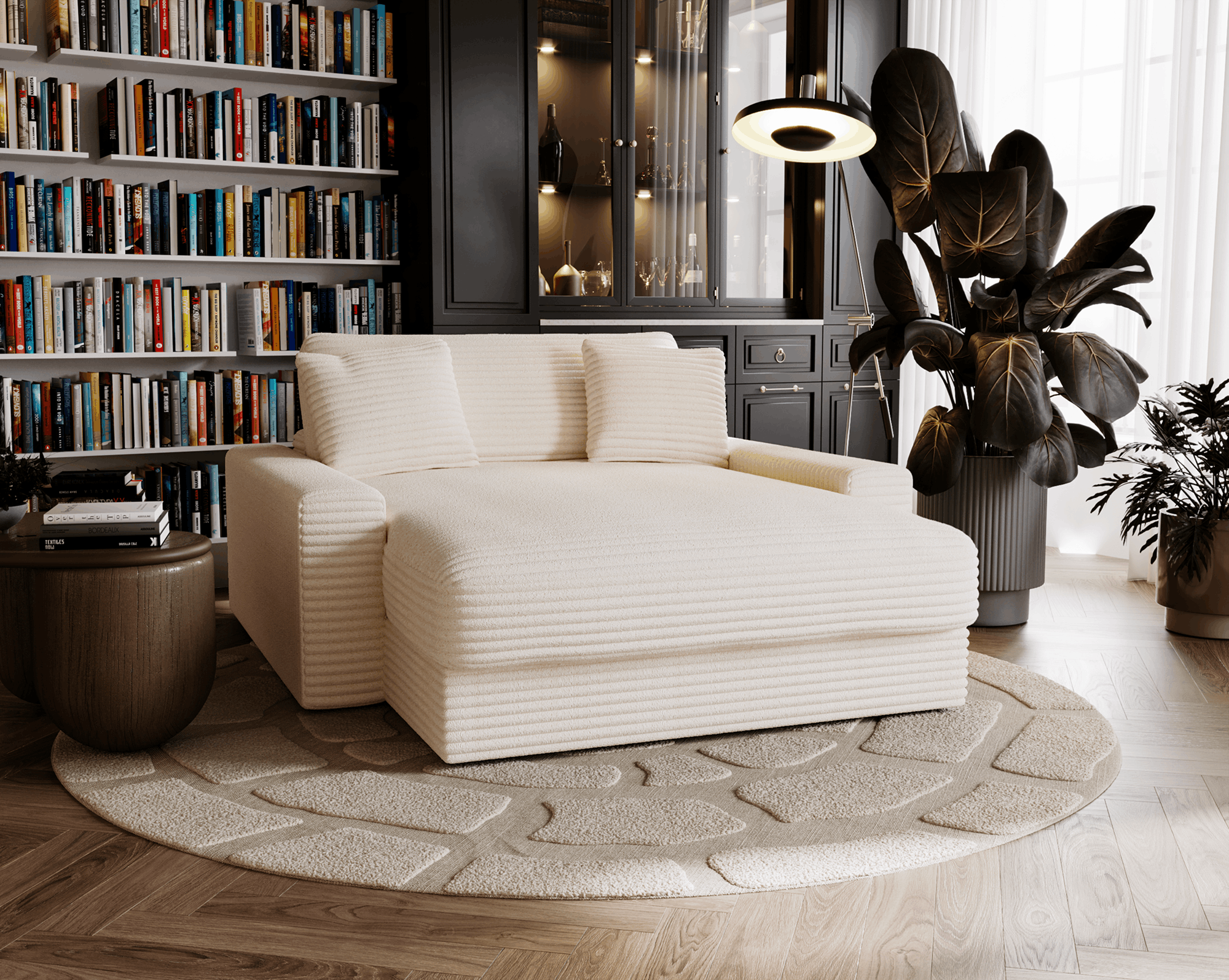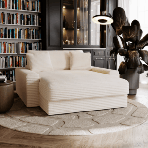 ☑️ Szerokie siedzisko, stabilne oparcie i miękkie poduszki tworzą komfortową przestrzeń do odpoczynku – czy to przy książce, filmie czy po prostu po długim dniu.