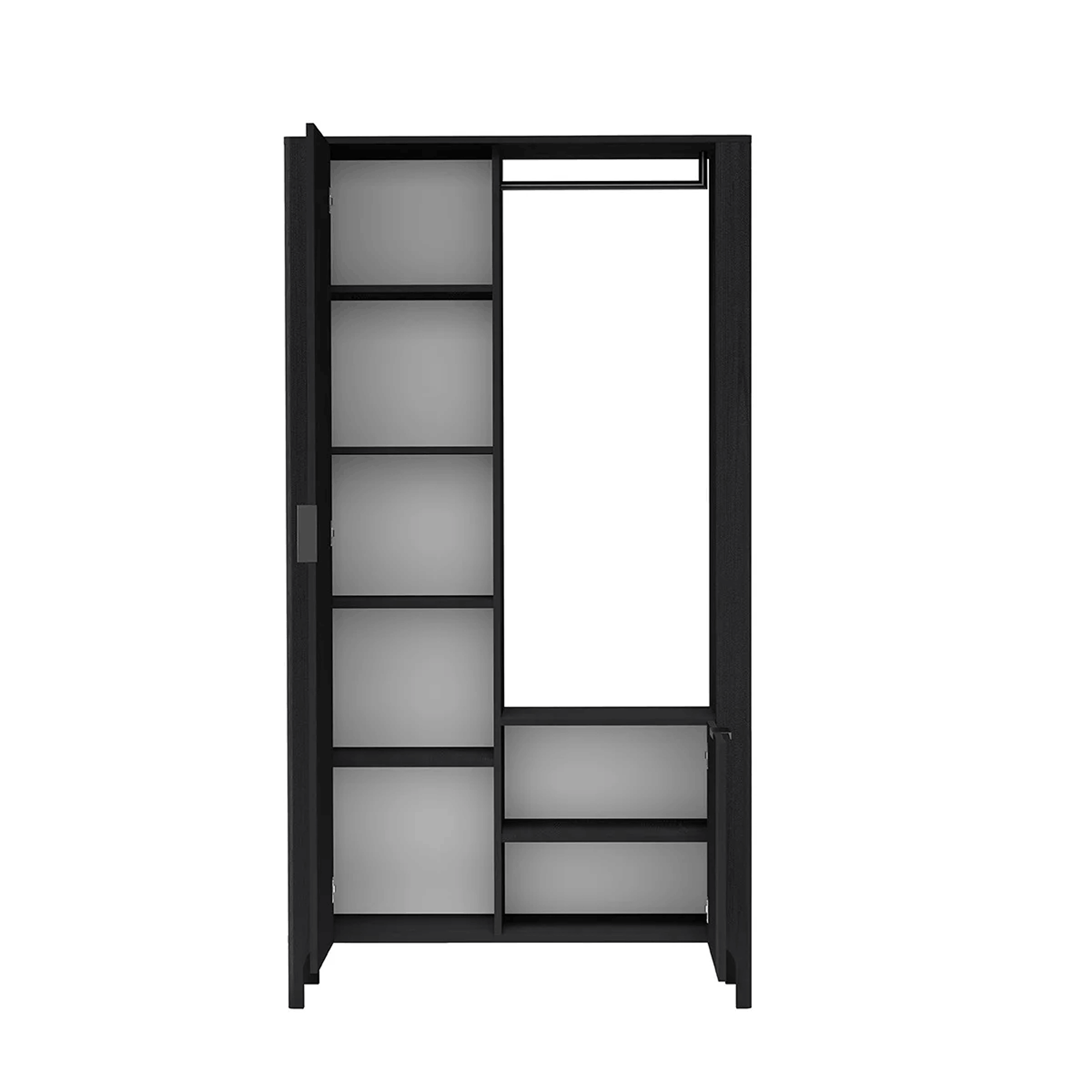 Garderoba Montis w czarnym, matowym wykończeniu to nowoczesne i funkcjonalne rozwiązanie do przedpokoju lub sypialni.