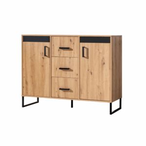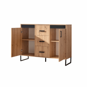 Kolekcja mebli Flix w kolorze dąb artisan to eleganckie i nowoczesne rozwiązanie. W kolekcji znajdziesz różnorodne meble, dzięki czemu możesz kompleksowo urządzić przestrzeń. Czarne uchwyty dodają meblom charakteru i wyrazistości, a opcjonalne lamele pozwalają na spersonalizowanie wyglądu, dopasowując go do Twojego gustu i stylu wnętrza.