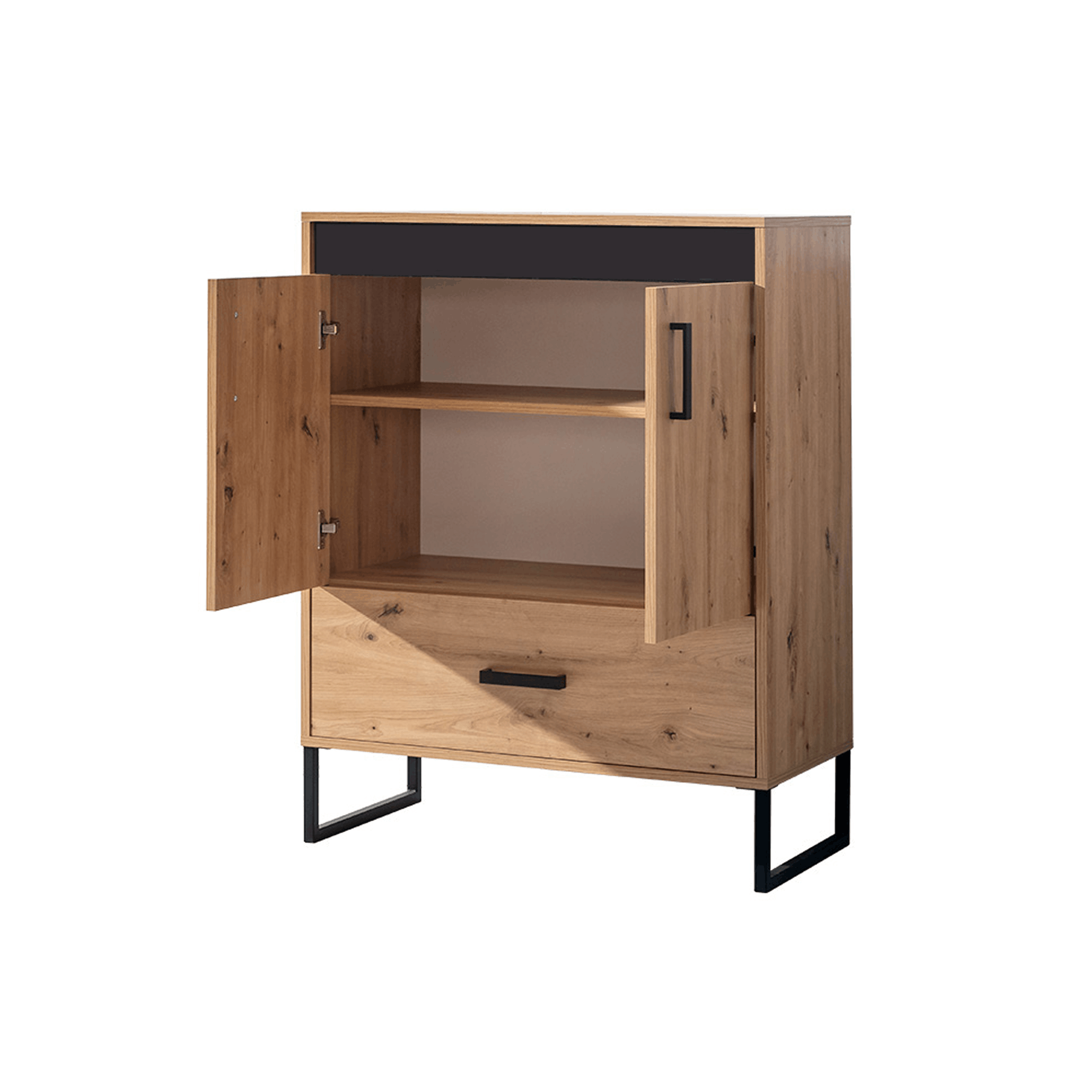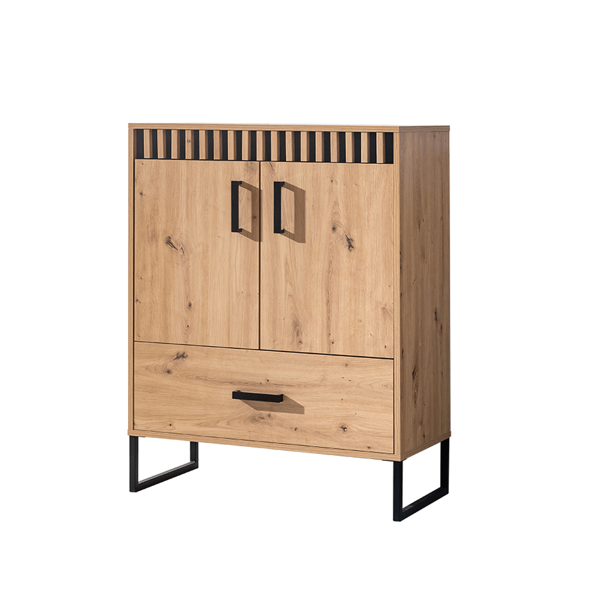 Kolekcja mebli Flix w kolorze dąb artisan to eleganckie i nowoczesne rozwiązanie. W kolekcji znajdziesz różnorodne meble, dzięki czemu możesz kompleksowo urządzić przestrzeń. Czarne uchwyty dodają meblom charakteru i wyrazistości, a opcjonalne lamele pozwalają na spersonalizowanie wyglądu, dopasowując go do Twojego gustu i stylu wnętrza.