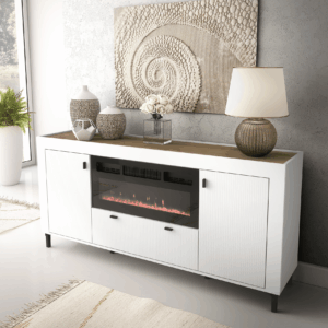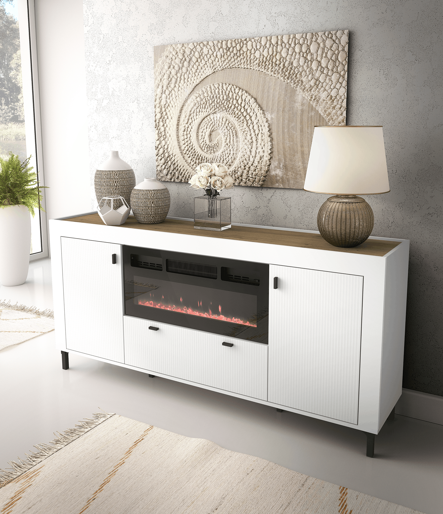 Kominek elektryczny posiada funkcje grzewczą 16 – 28 °C. Zmiana koloru płomienia odbywa się za pomocą pilota.