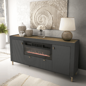Kominek elektryczny posiada funkcje grzewczą 16 – 28 °C. Zmiana koloru płomienia odbywa się za pomocą pilota.