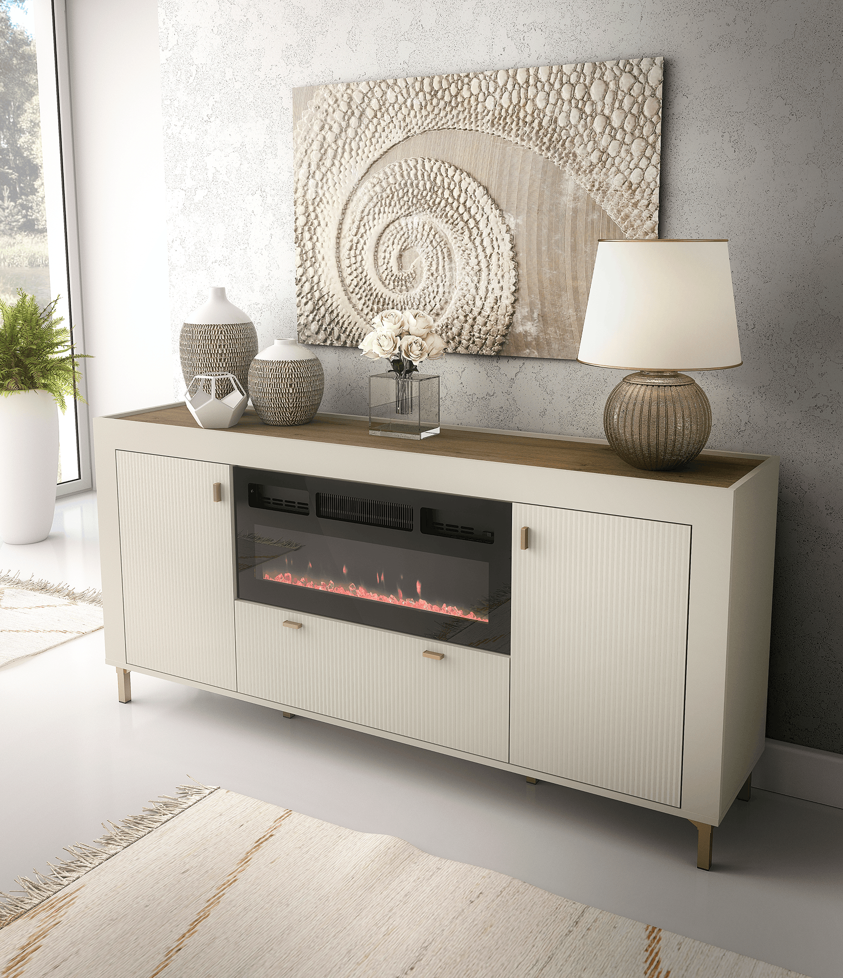Kominek elektryczny posiada funkcje grzewczą 16 – 28 °C. Zmiana koloru płomienia odbywa się za pomocą pilota.