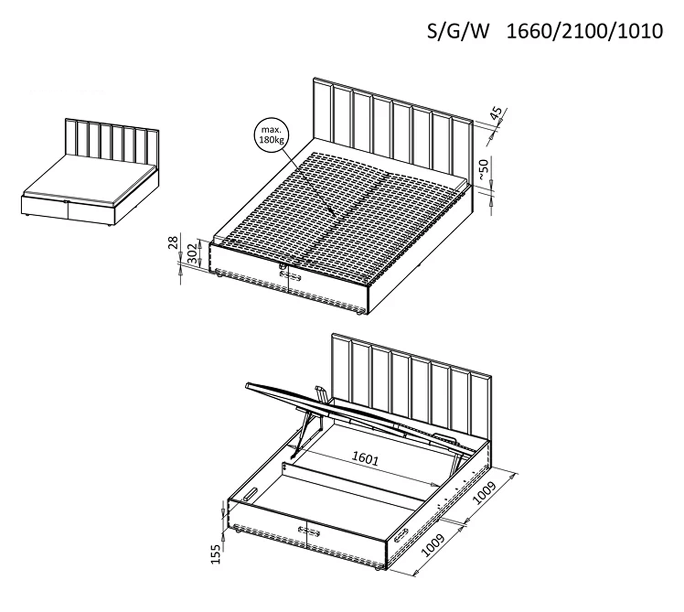 120 × 200 cm / 140 × 200 cm / 160 × 200 cm