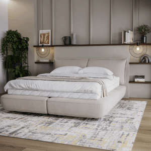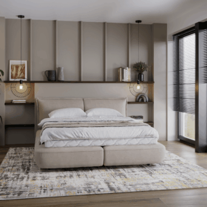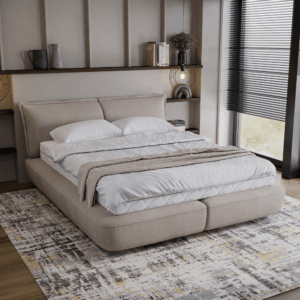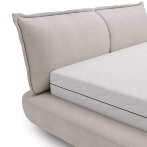 Dwie duże, stałe poduchy wykończone szwem francuskim nie tylko doskonale wyglądają, ale także zapewniają wygodę podczas relaksu. Łóżko Vida to coś więcej niż zwykły mebel – to przestrzeń, która zachęca do wypoczynku i regeneracji. Jego subtelny urok i ponadczasowy styl sprawiają, że staje się centralnym punktem sypialni, wprowadzając do niej harmonię i elegancję.