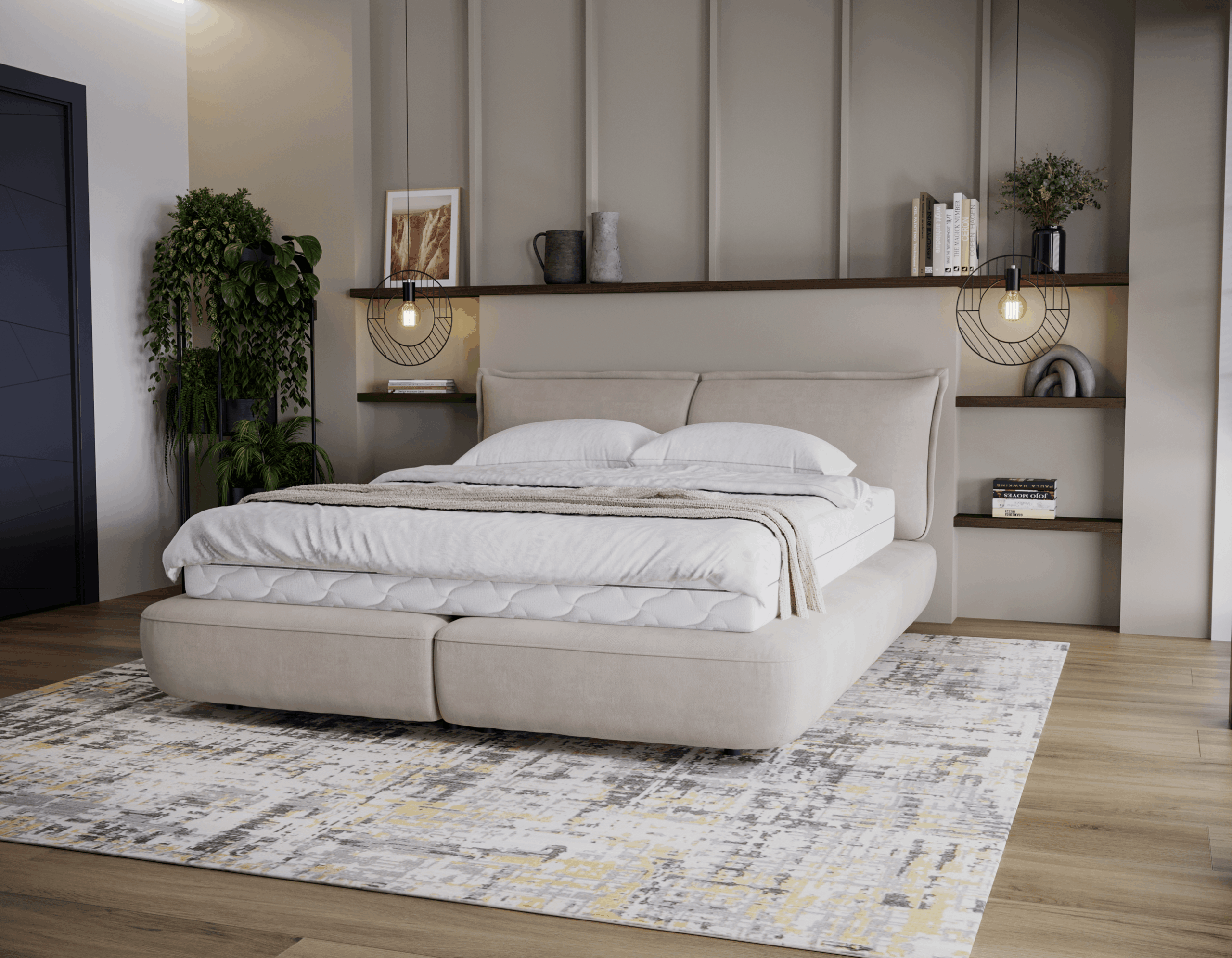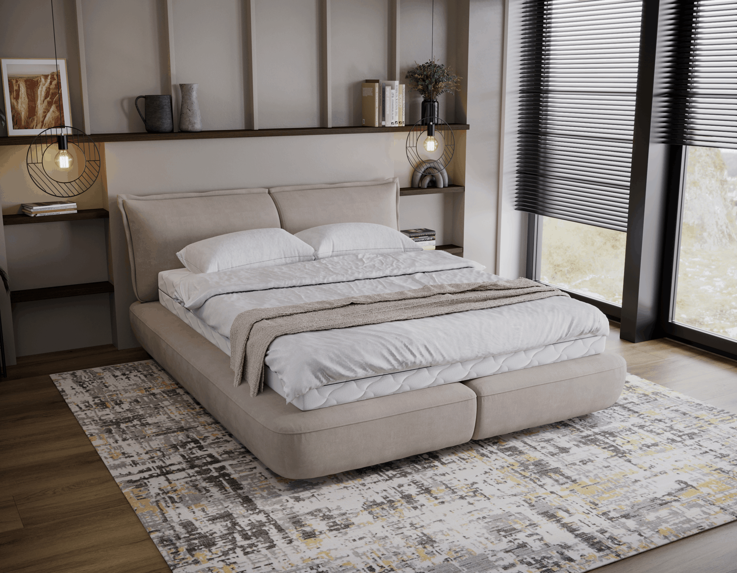☑️ Uniwersalny design – dopasowuje się do różnych stylów sypialni, wprowadzając elegancję i harmonię
