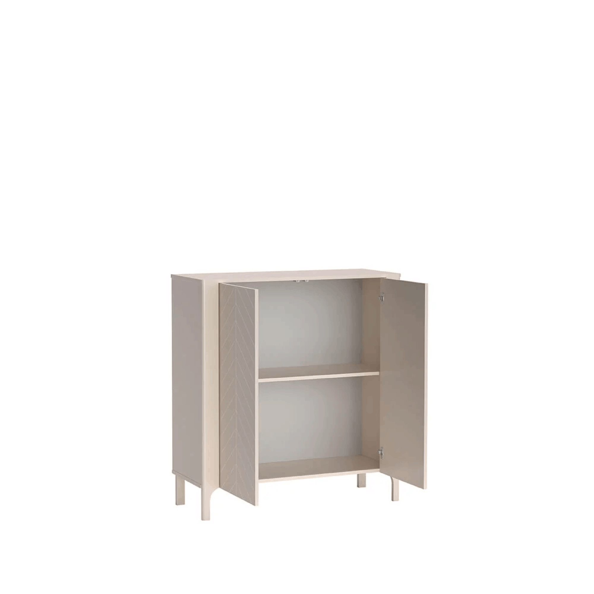Mała Komoda Montis w kaszmirowym, matowym wykończeniu to eleganckie i praktyczne rozwiązanie do mniejszych wnętrz.