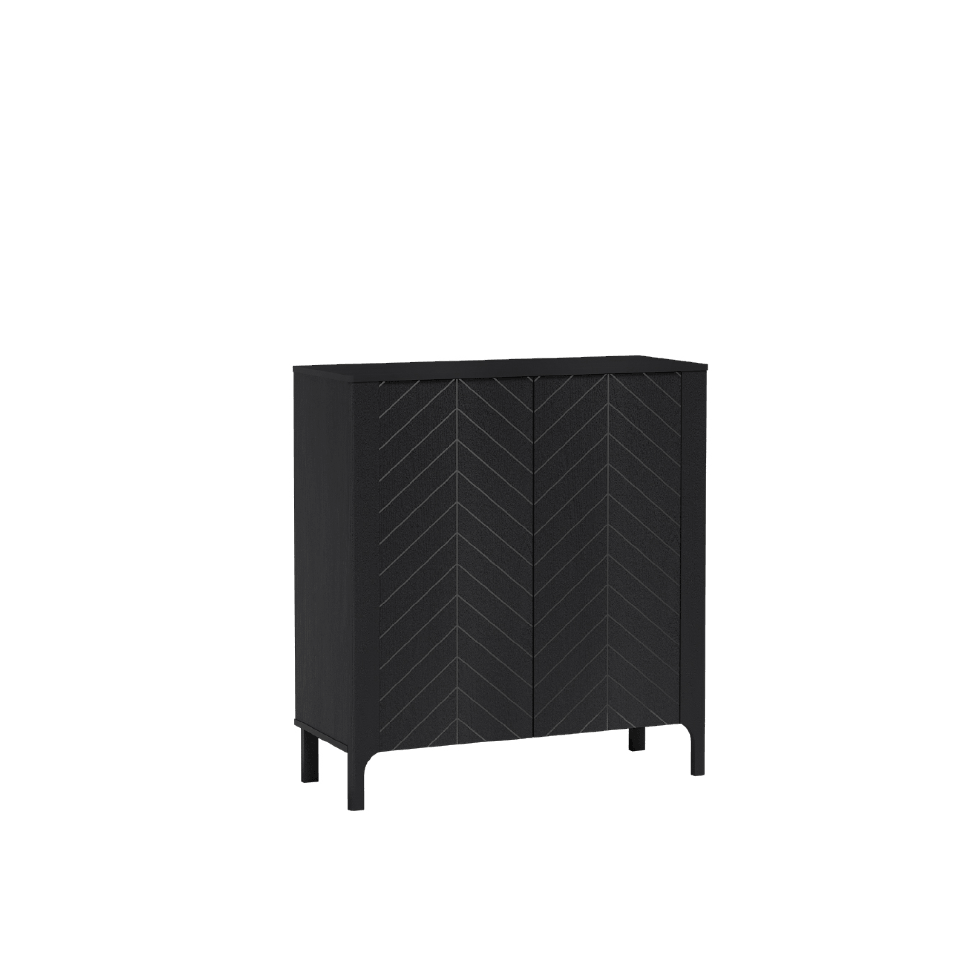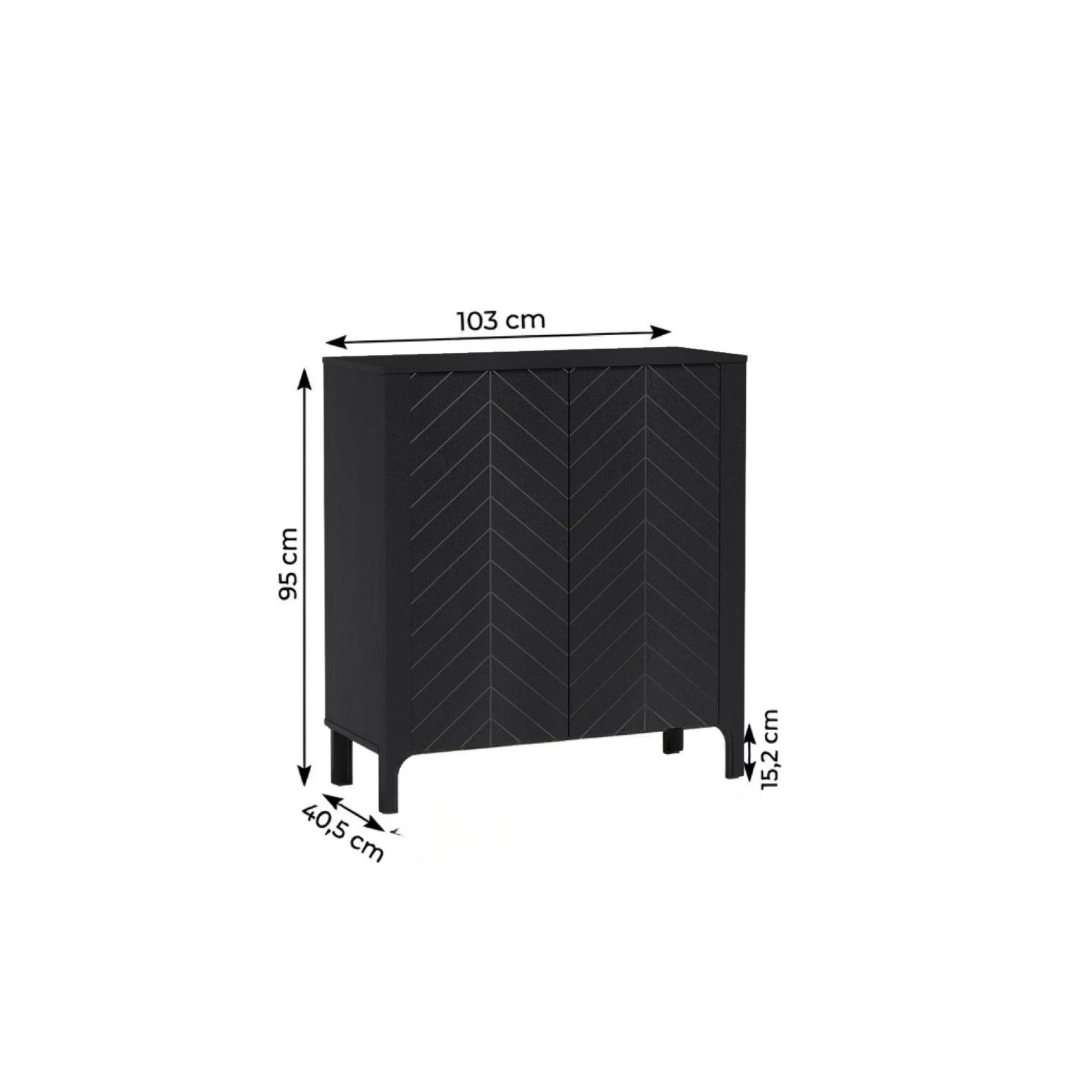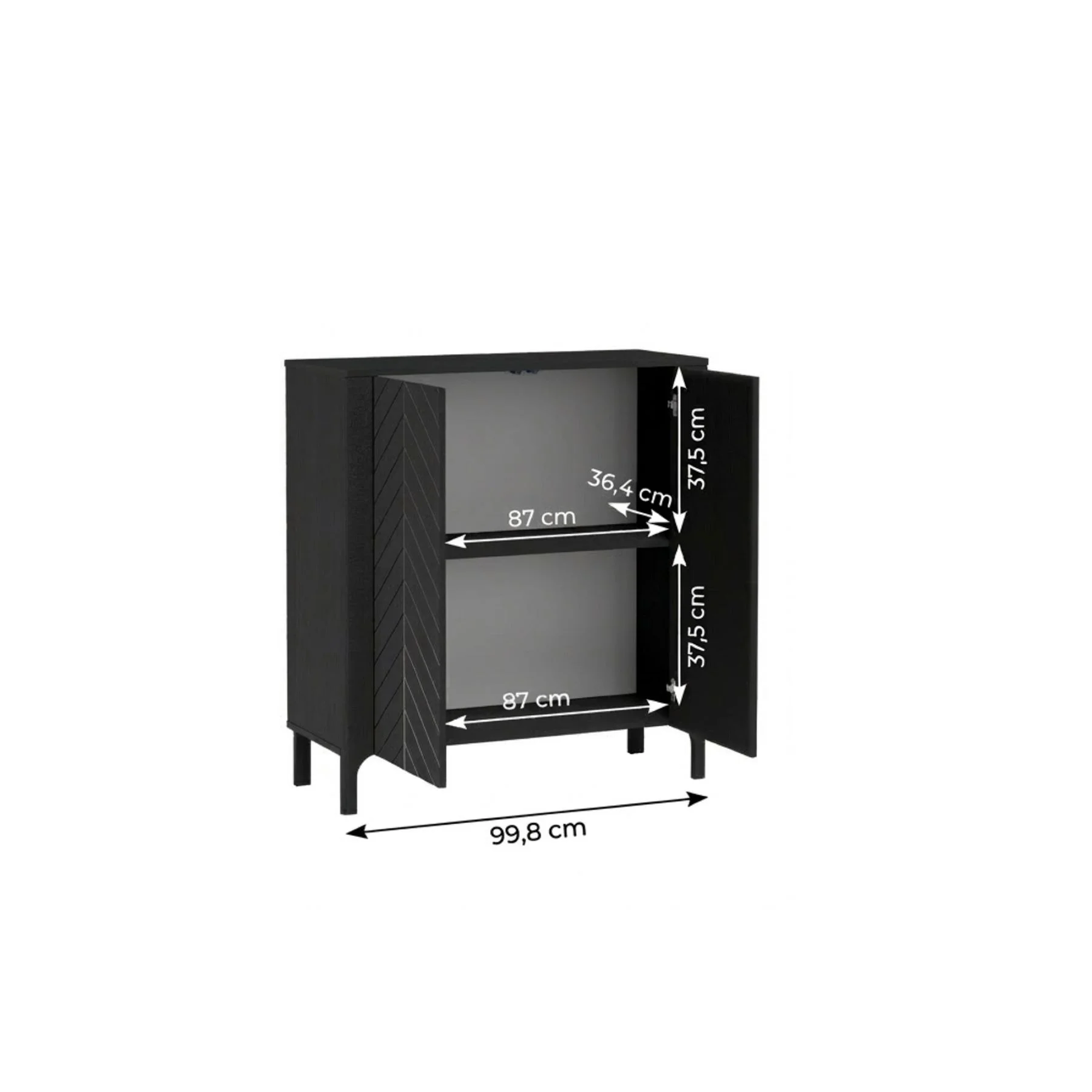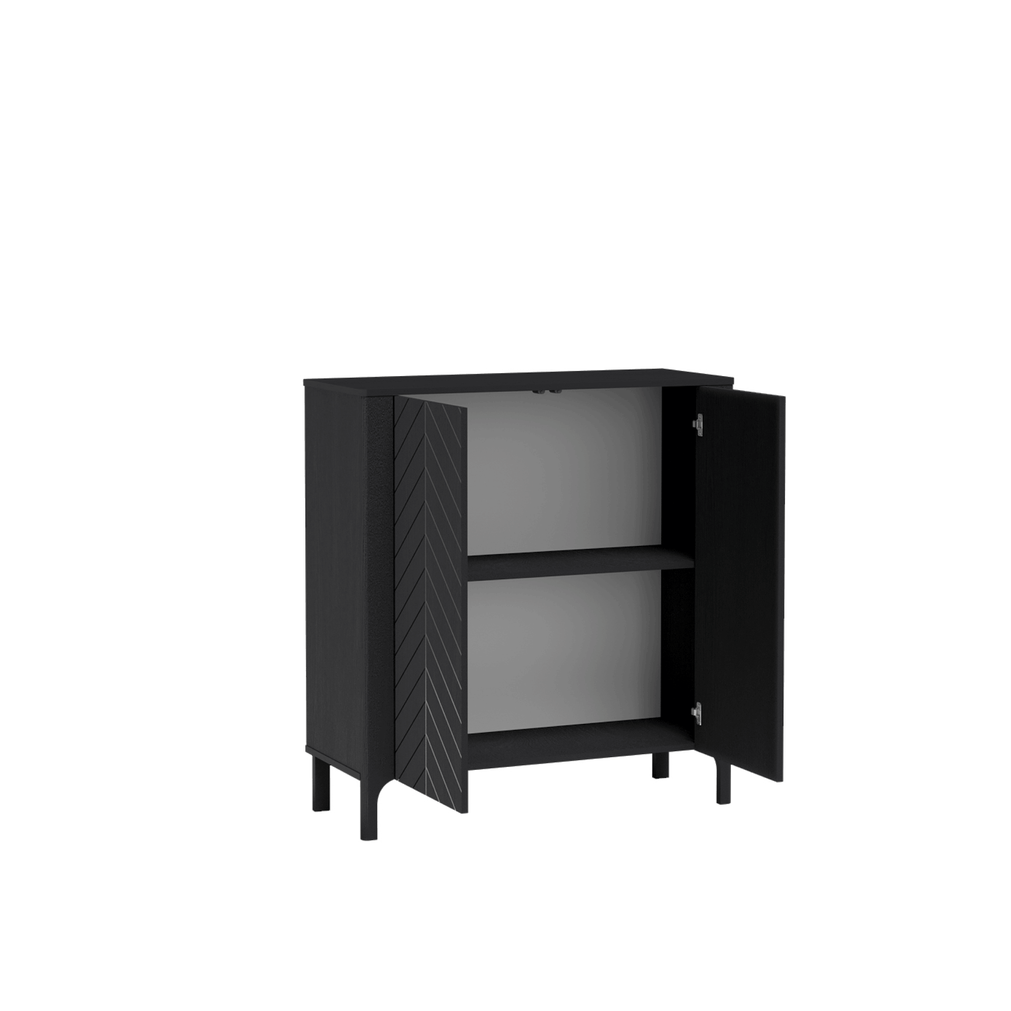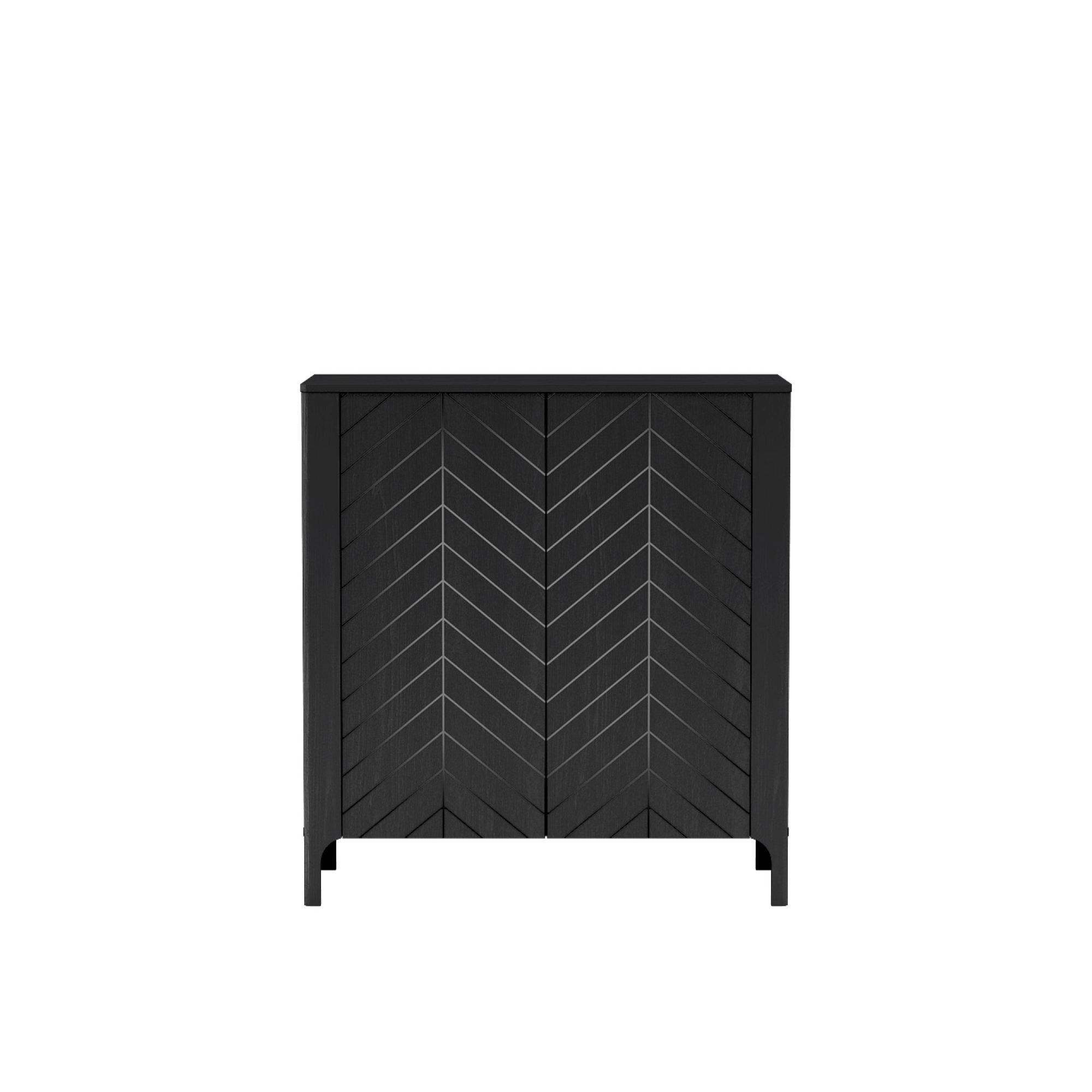 Fronty zdobione subtelną jodełką nadają jej stylowego charakteru, a wewnętrzna półka zapewnia wygodne miejsce do przechowywania. Stabilna konstrukcja i nowoczesny design sprawiają, że mebel doskonale sprawdzi się w salonie, sypialni lub przedpokoju.