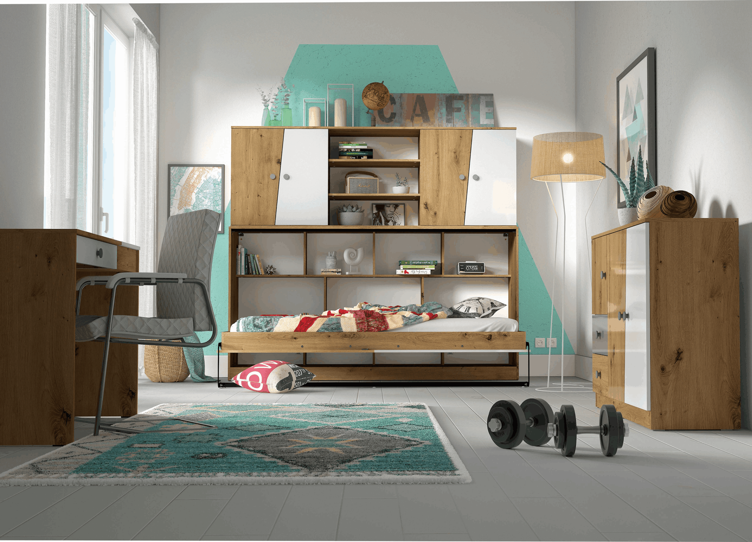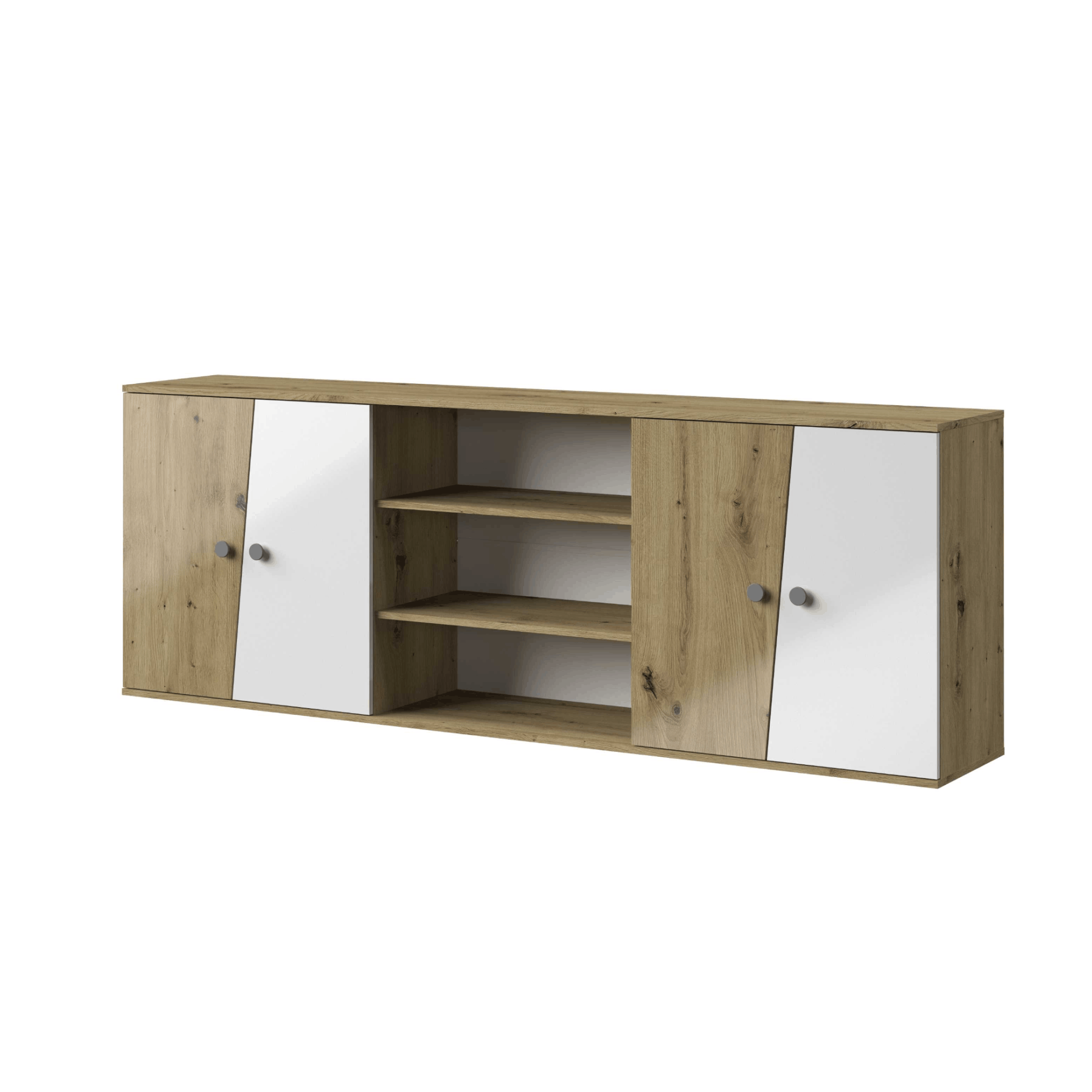 Kolekcja Argo to nowoczesne meble stworzone z myślą o funkcjonalności i estetyce. Proste, geometryczne bryły oraz modne połączenie dekoru drewna z gładkimi frontami sprawiają, że zestaw doskonale pasuje do salonu, pokoju młodzieżowego czy domowego biura.