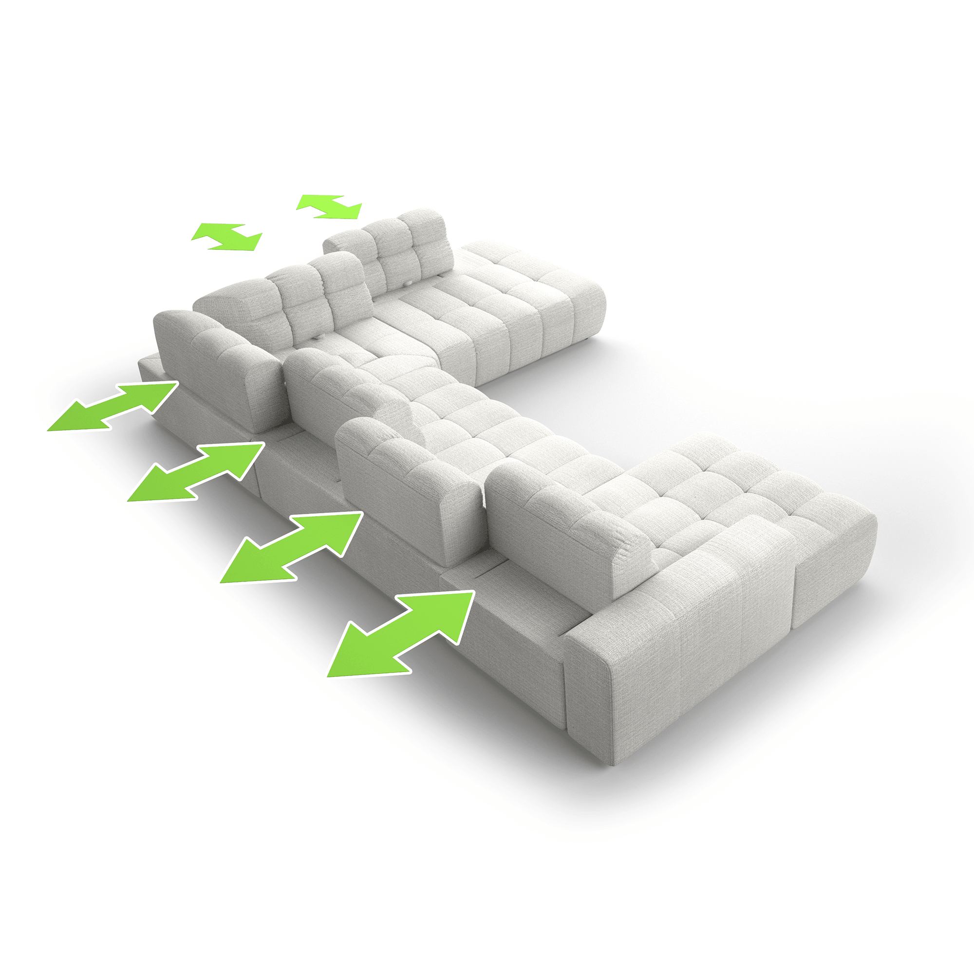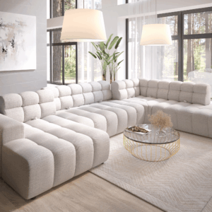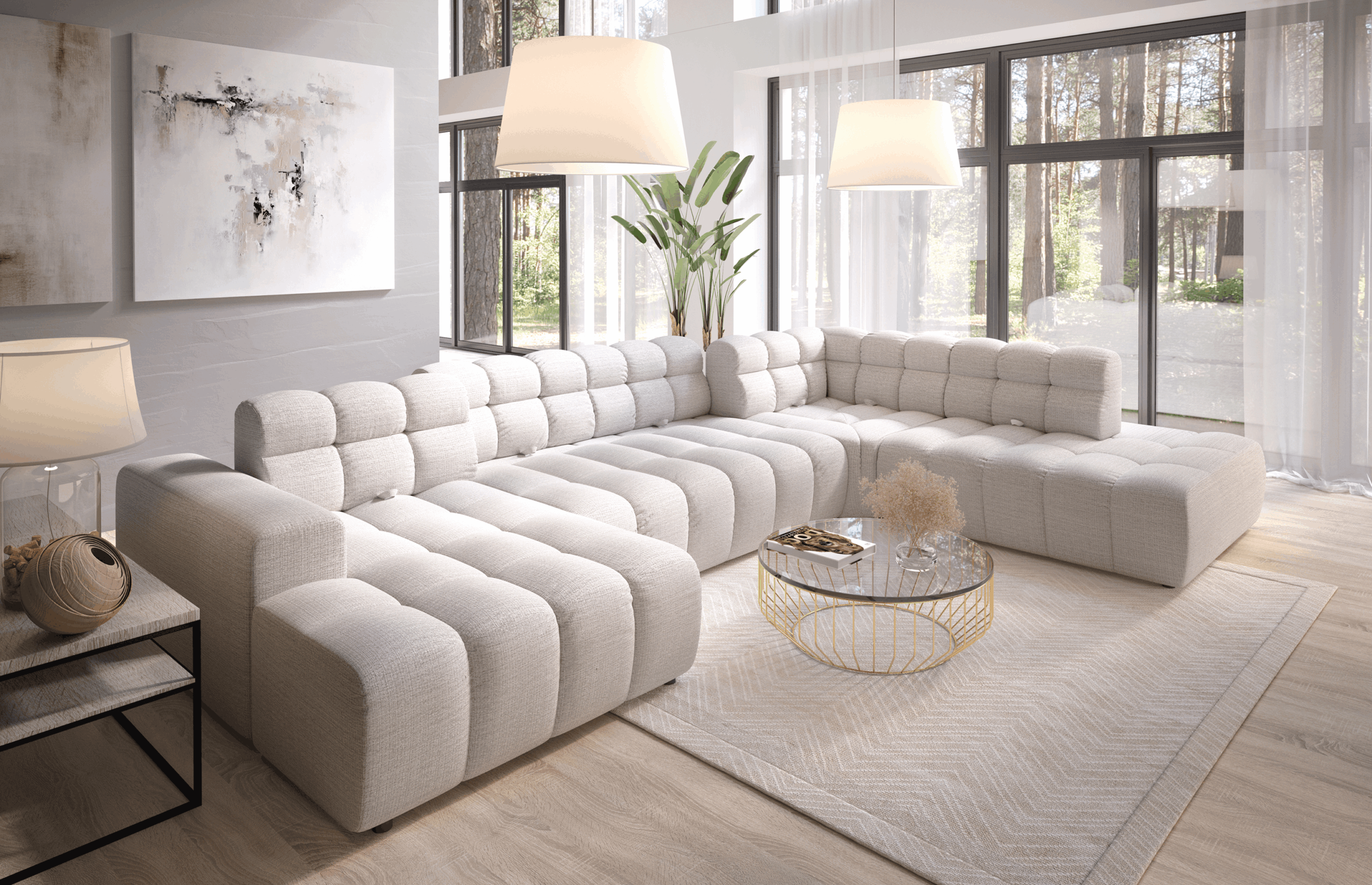 ☑️Narożnik Grandioto designerski narożnik w kształcie litery U, stworzony z myślą o przestronnych, nowoczesnych wnętrzach. Jego charakterystyczne pikowane panele nadają mu wyjątkowej lekkości i luksusowego charakteru, jednocześnie zapewniając wysoki komfort użytkowania.