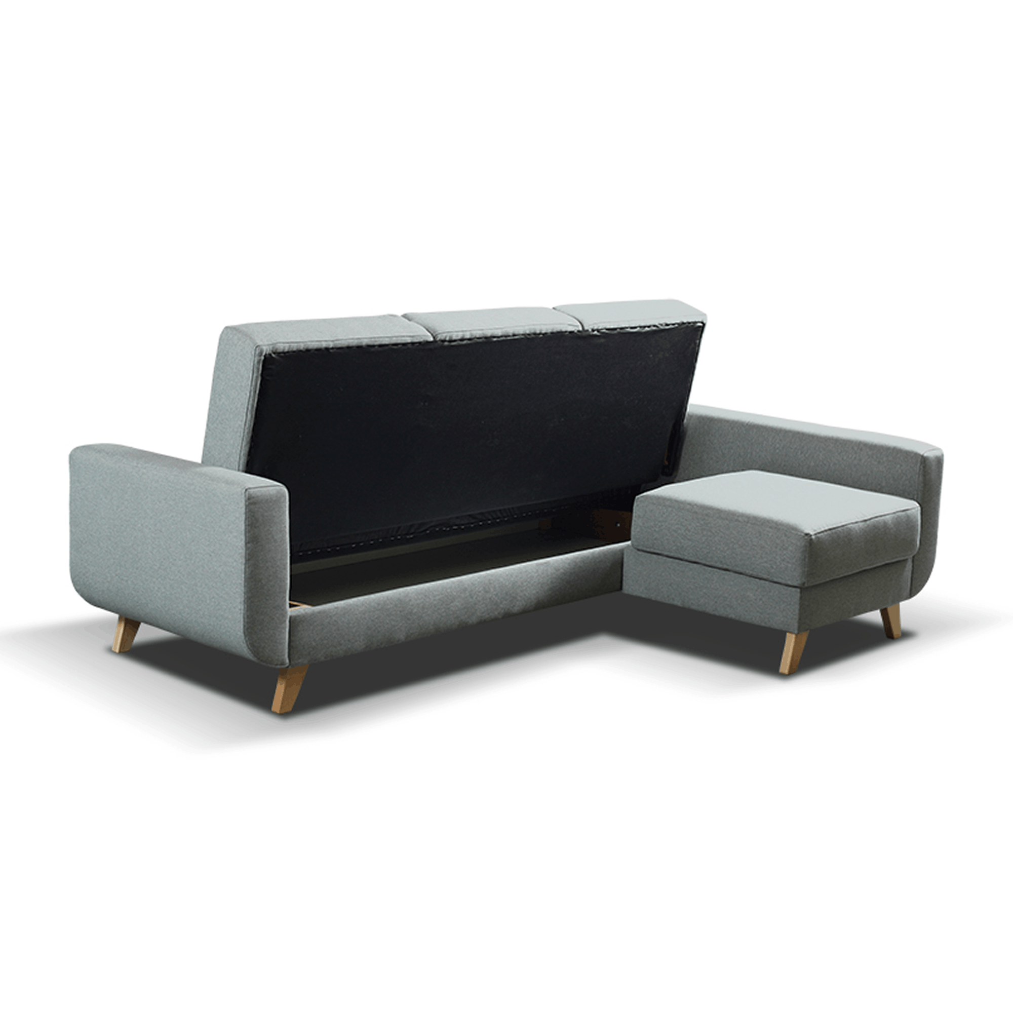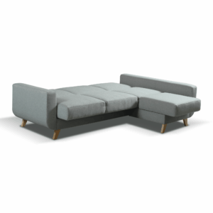 ☑️ Model wyposażony jest w funkcję spania o wymiarach 115 × 195 cm, dzięki czemu szybko zamienia się w wygodne miejsce do nocnego odpoczynku. W praktycznym pojemniku na pościel bez trudu schowasz koce, poduszki czy zapasową kołdrę, utrzymując porządek w salonie.