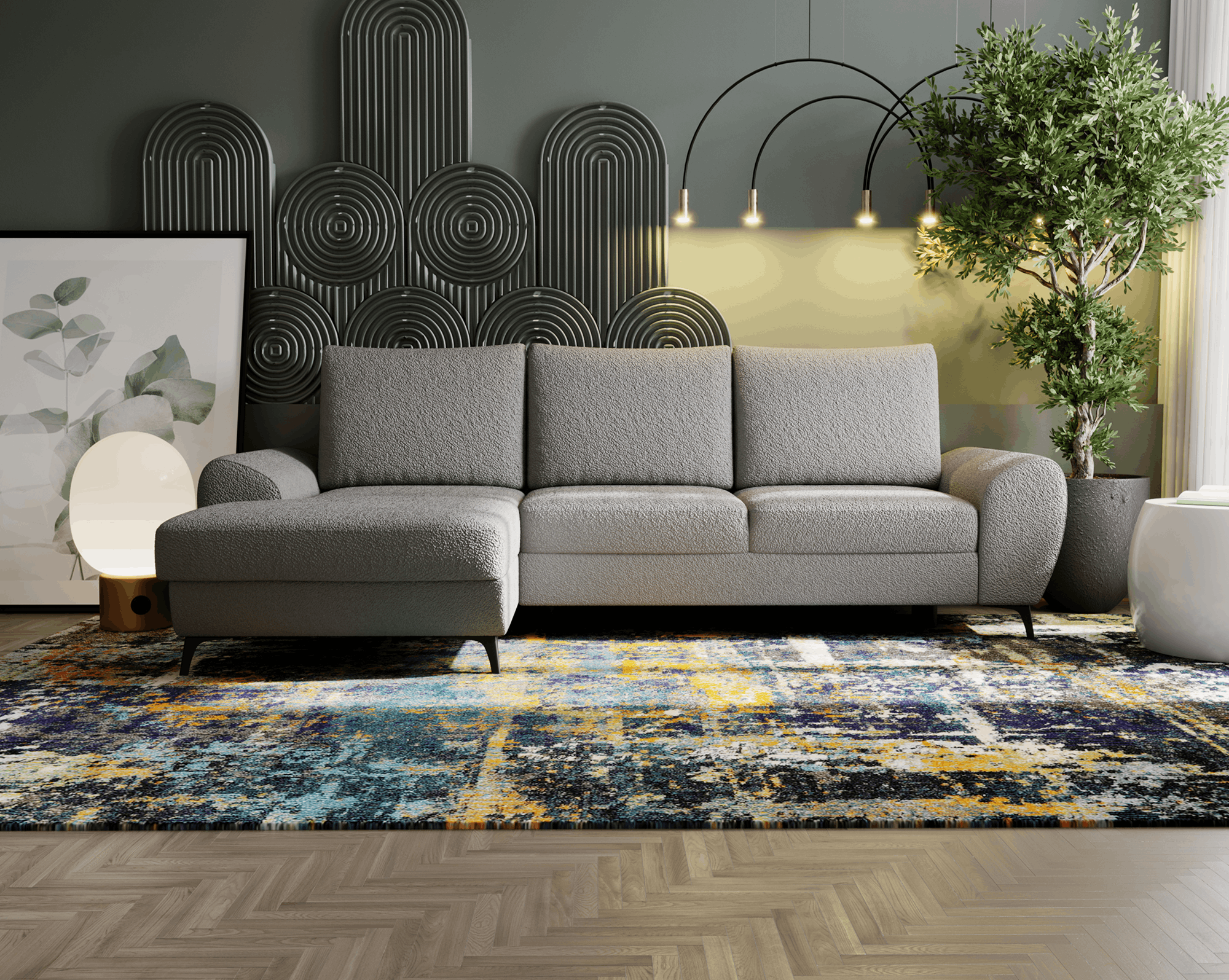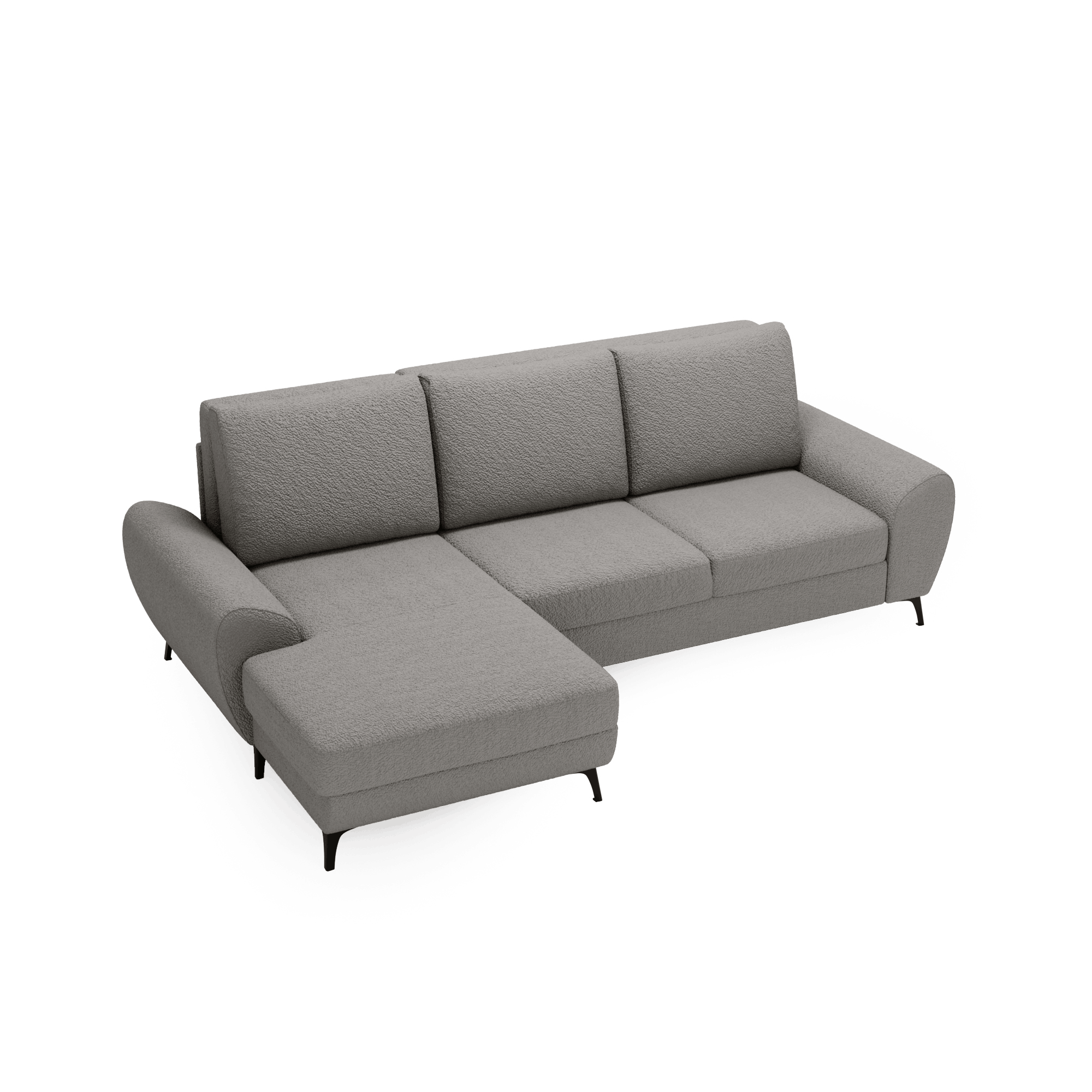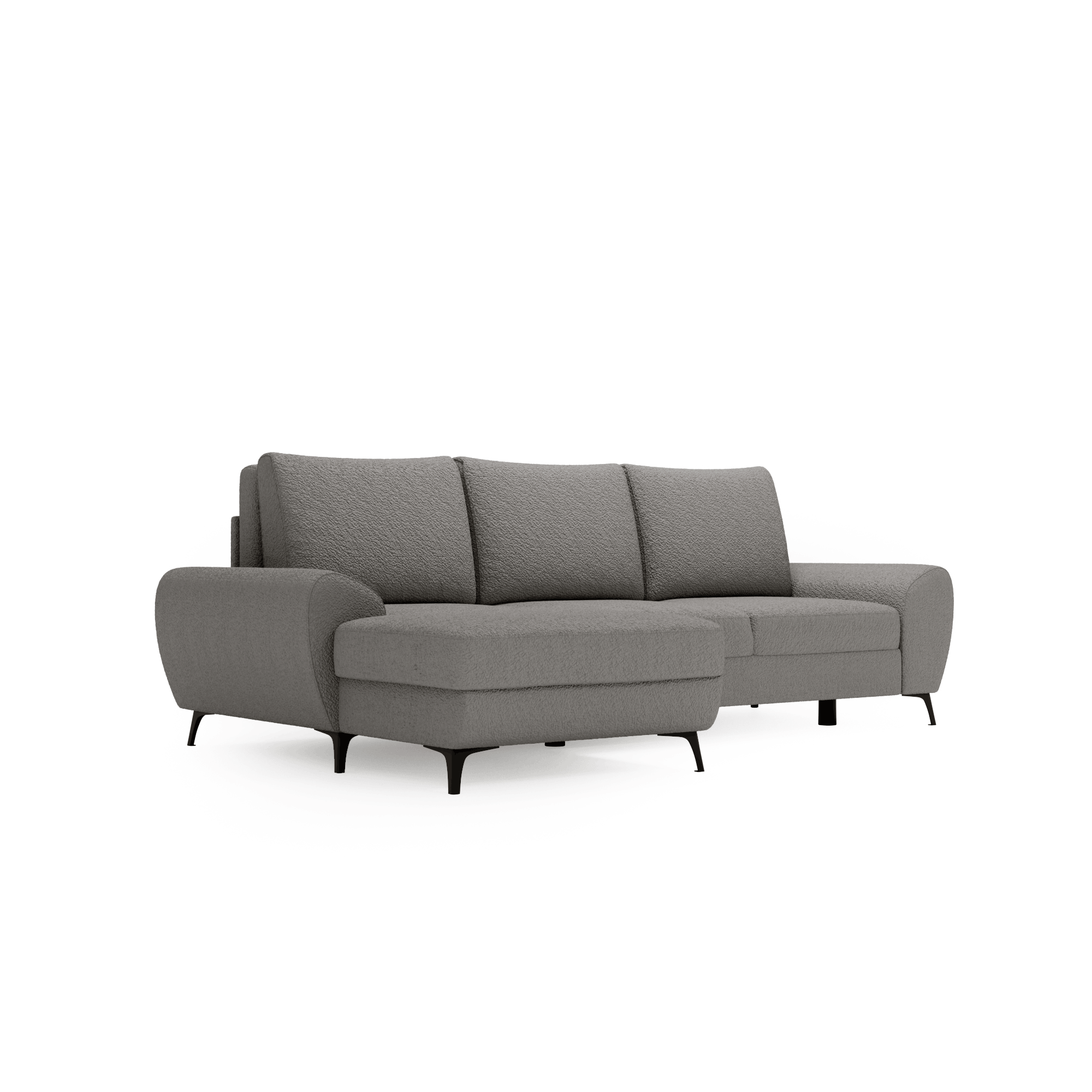 Narożnik Arlis to połączenie prostej, nowoczesnej formy z funkcjonalnością, która sprawdza się na co dzień. Klasyczny układ w kształcie litery L, szerokie boczki oraz metalowe nóżki nadają mu lekko loftowy charakter i sprawiają, że dobrze prezentuje się w różnych aranżacjach – od nowoczesnych po bardziej klasyczne.