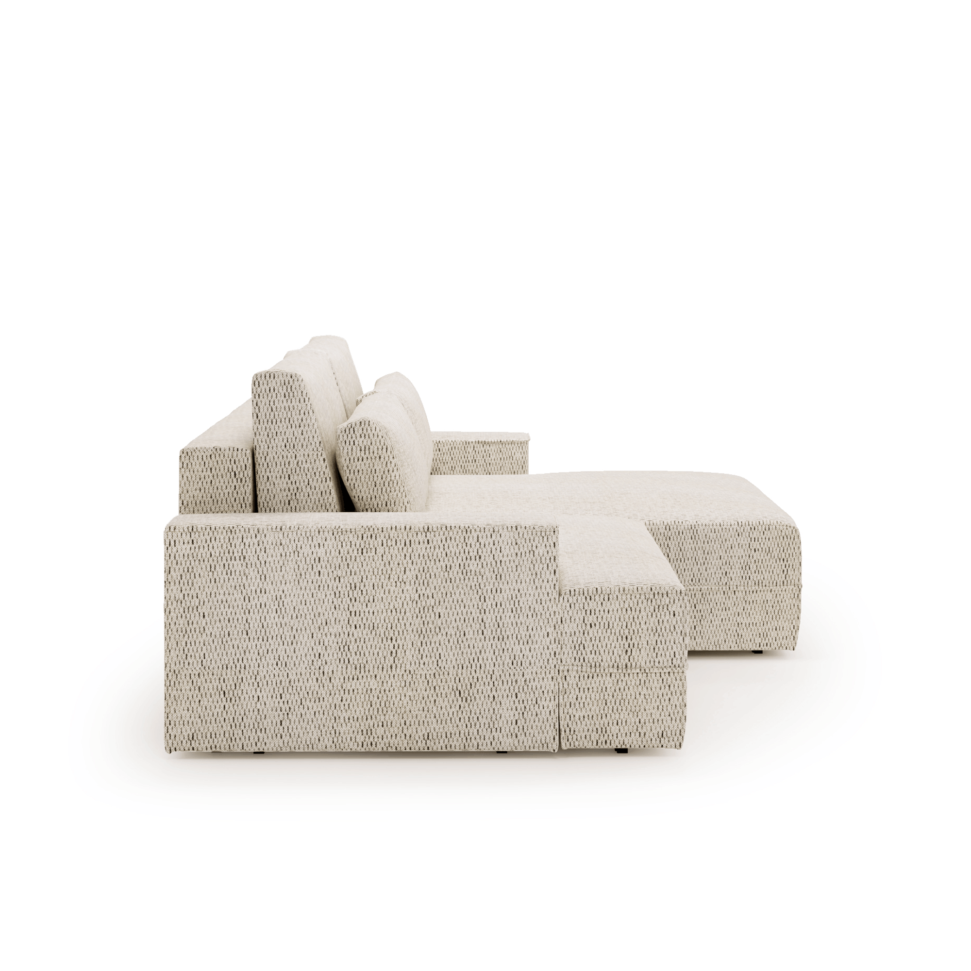 ☑️ Estetycznie wykończony tył – Tapicerowany tył narożnika umożliwia jego ustawienie nie tylko przy ścianie, ale również w centralnej części pomieszczenia. Dzięki temu zyskujesz większą swobodę w aranżacji salonu.