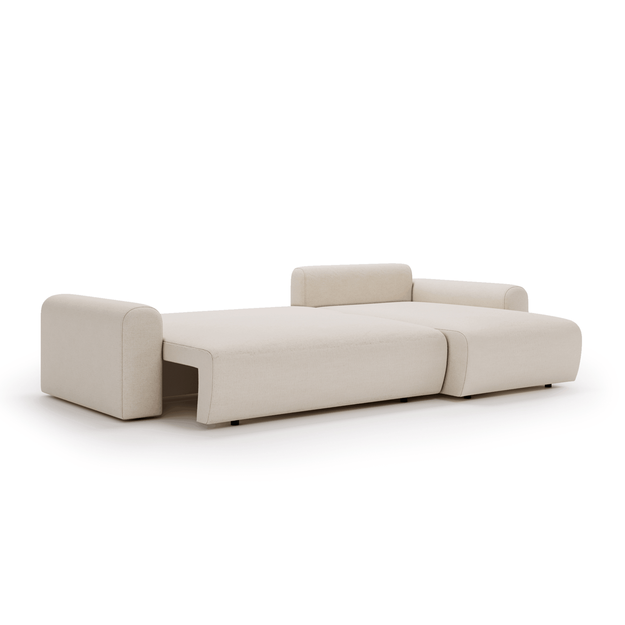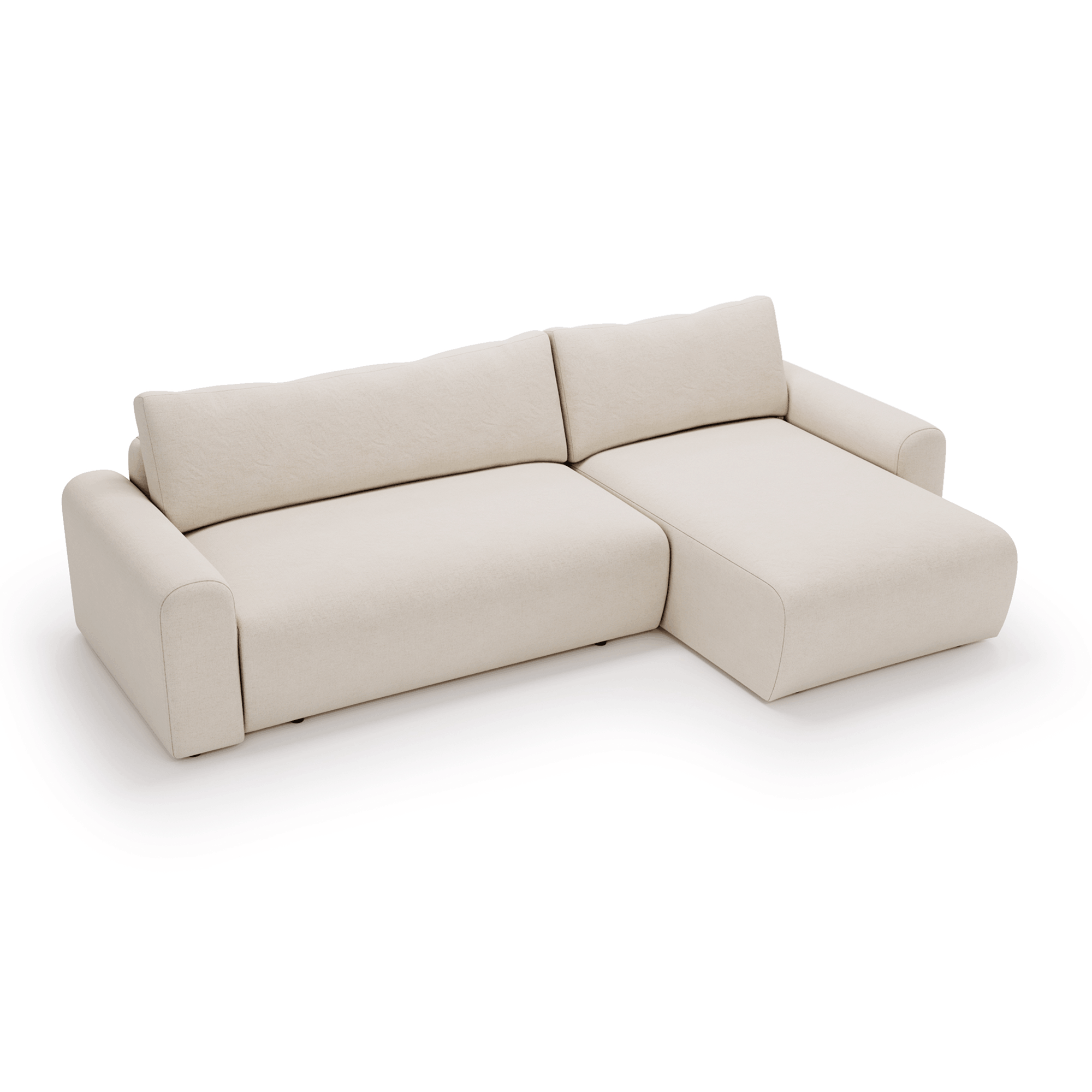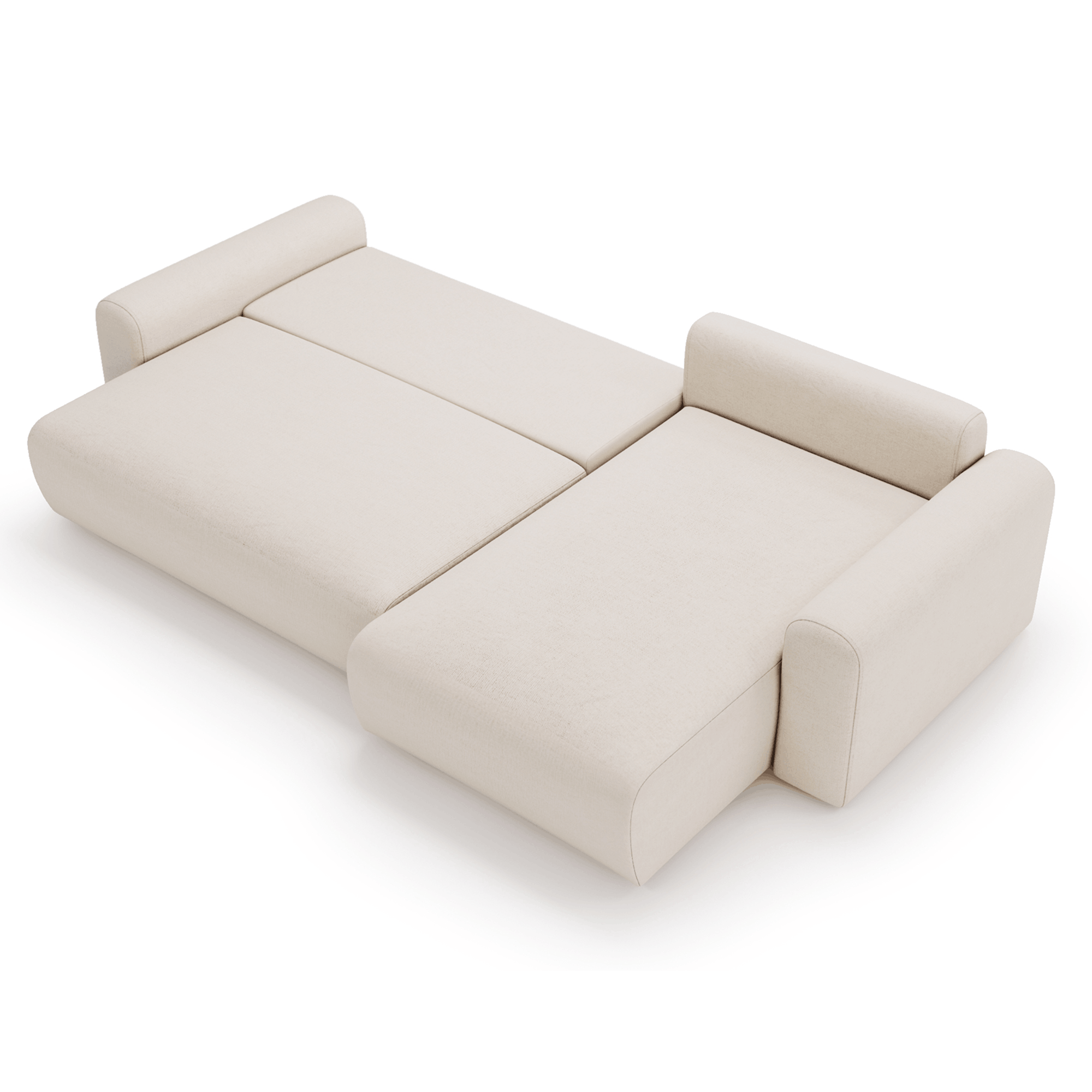 Wyposażony w system DL, narożnik szybko zmienia się w wygodne łóżko o powierzchni spania 132×203 cm – idealne zarówno do codziennego użytku, jak i do przenocowania gości.