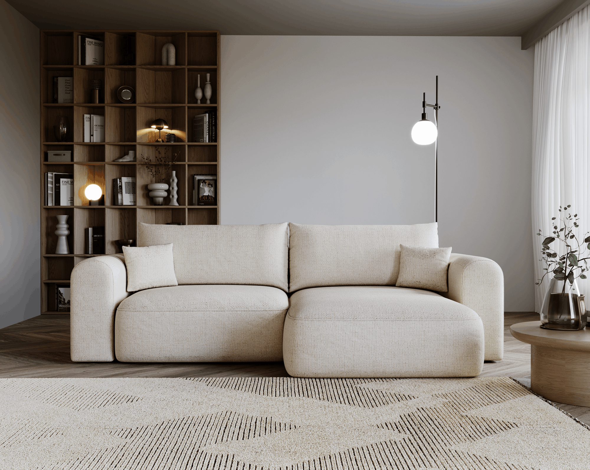 ☑️ Praktyczna funkcja spania – Dzięki mechanizmowi DL narożnik w prosty sposób zamienia się w komfortowe łóżko z przestronną powierzchnią spania. Dodatkowo wbudowany pojemnik na pościel ułatwia przechowywanie i utrzymanie porządku w salonie.