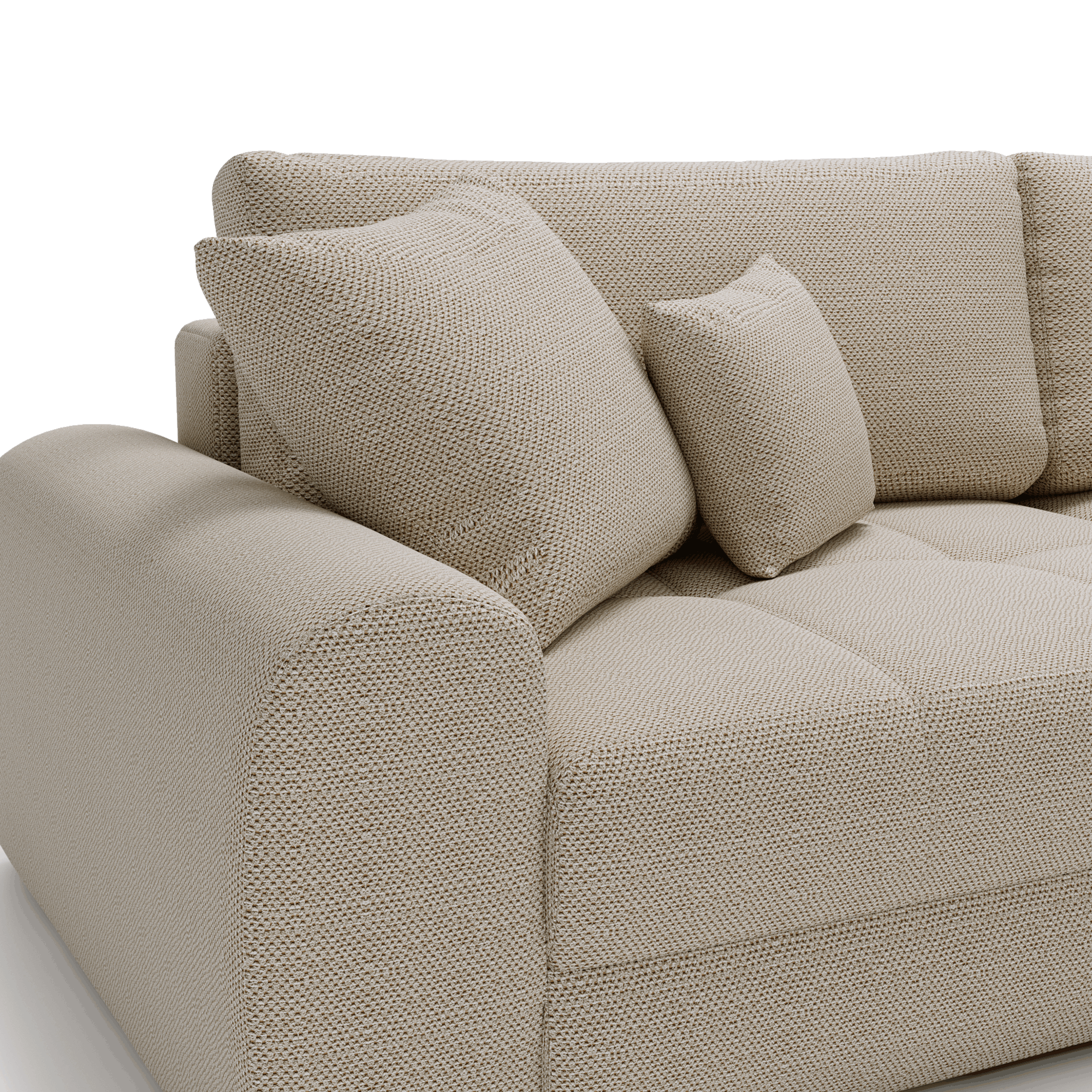 Prosta, elegancka forma oraz miękkie poduszki nadają mu przytulnego charakteru, dzięki czemu łatwo dopasować go do różnych aranżacji wnętrz.