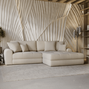 Narożnik Muris to propozycja dla osób, które szukają wygodnego i przestronnego mebla do codziennego użytkowania. Klasyczny układ w kształcie litery L sprawia, że dobrze wypełnia przestrzeń salonu, oferując dużo miejsca do odpoczynku – zarówno na co dzień, jak i podczas spotkań z bliskimi.