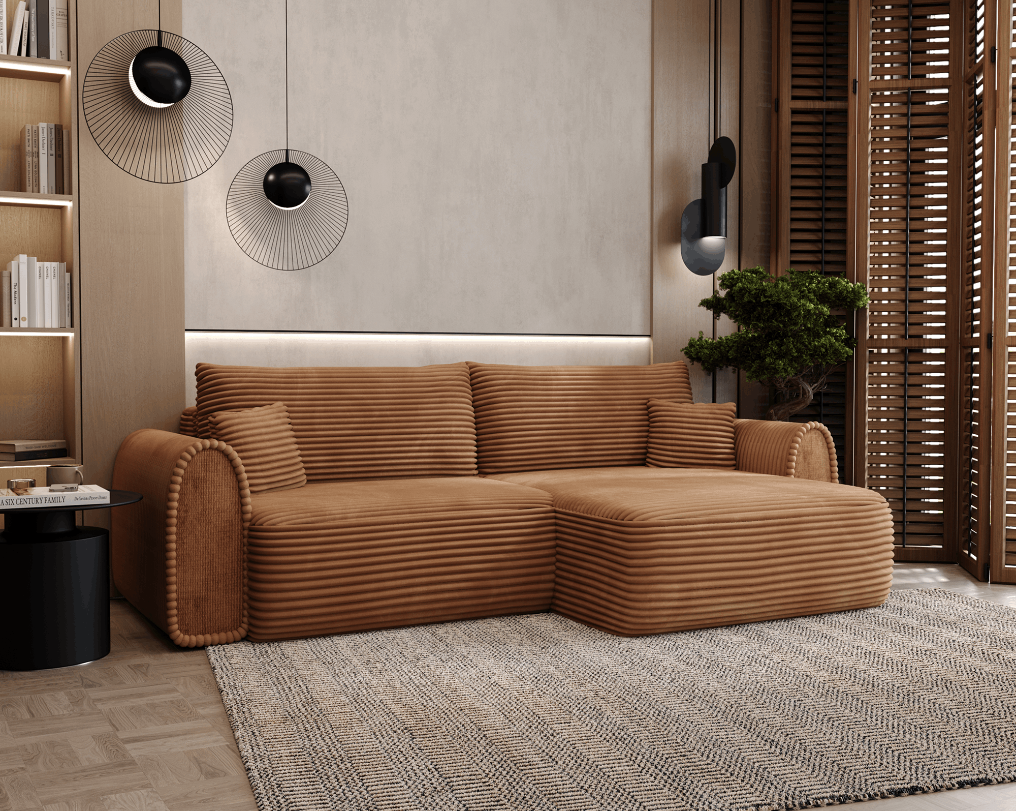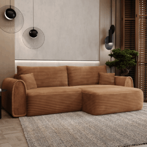 Narożnik Novelli to połączenie nowoczesnej formy i wygody, która sprawdza się na co dzień. Jego wyrazista bryła oraz miękka, przyjemna w odbiorze tapicerka tworzą przytulną przestrzeń do relaksu, a jednocześnie nadają wnętrzu charakteru.