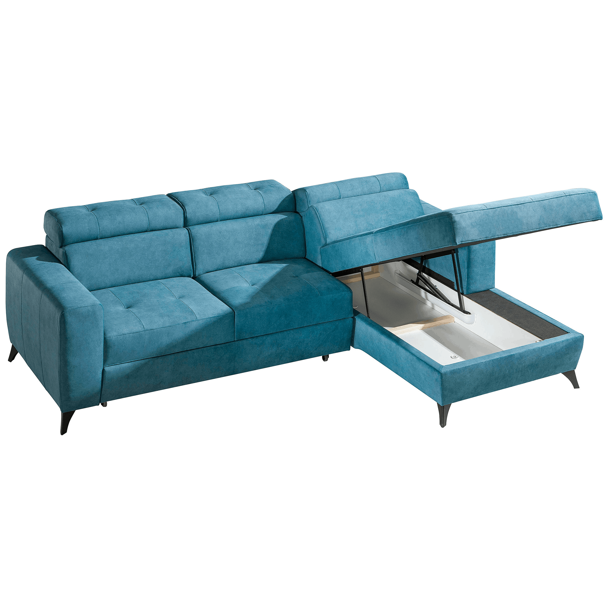 ☑️ Całość wspierają solidne metalowe nogi, które dodają narożnikowi nowoczesnego charakteru i zapewniają trwałość konstrukcji.