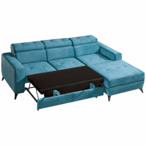 ☑️ Wyposażony w funkcję spania o powierzchni 125 × 227 cm szybko zamienia się w wygodne łóżko, a praktyczny pojemnik na pościel pozwala łatwo przechowywać koce i poduszki, utrzymując porządek w salonie.