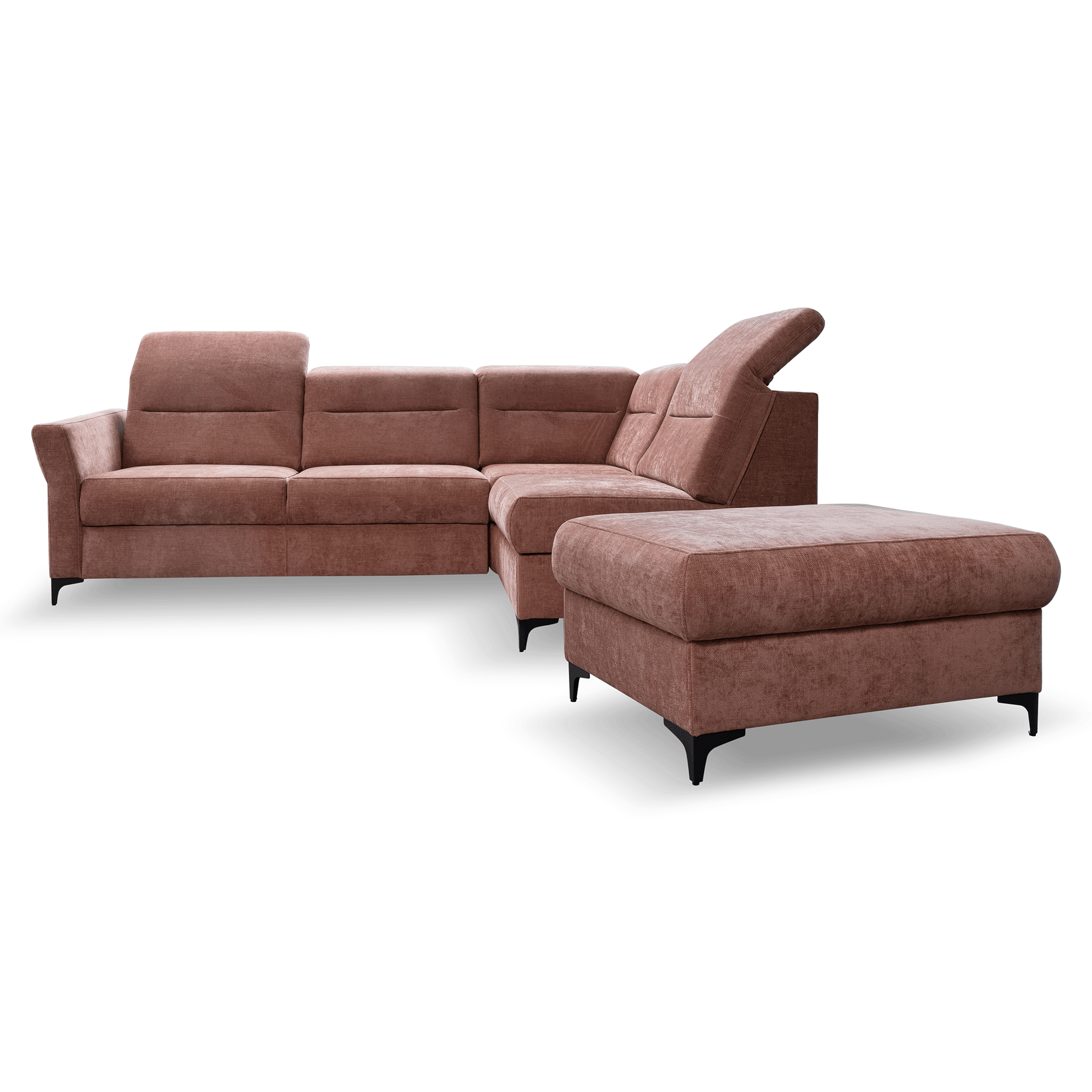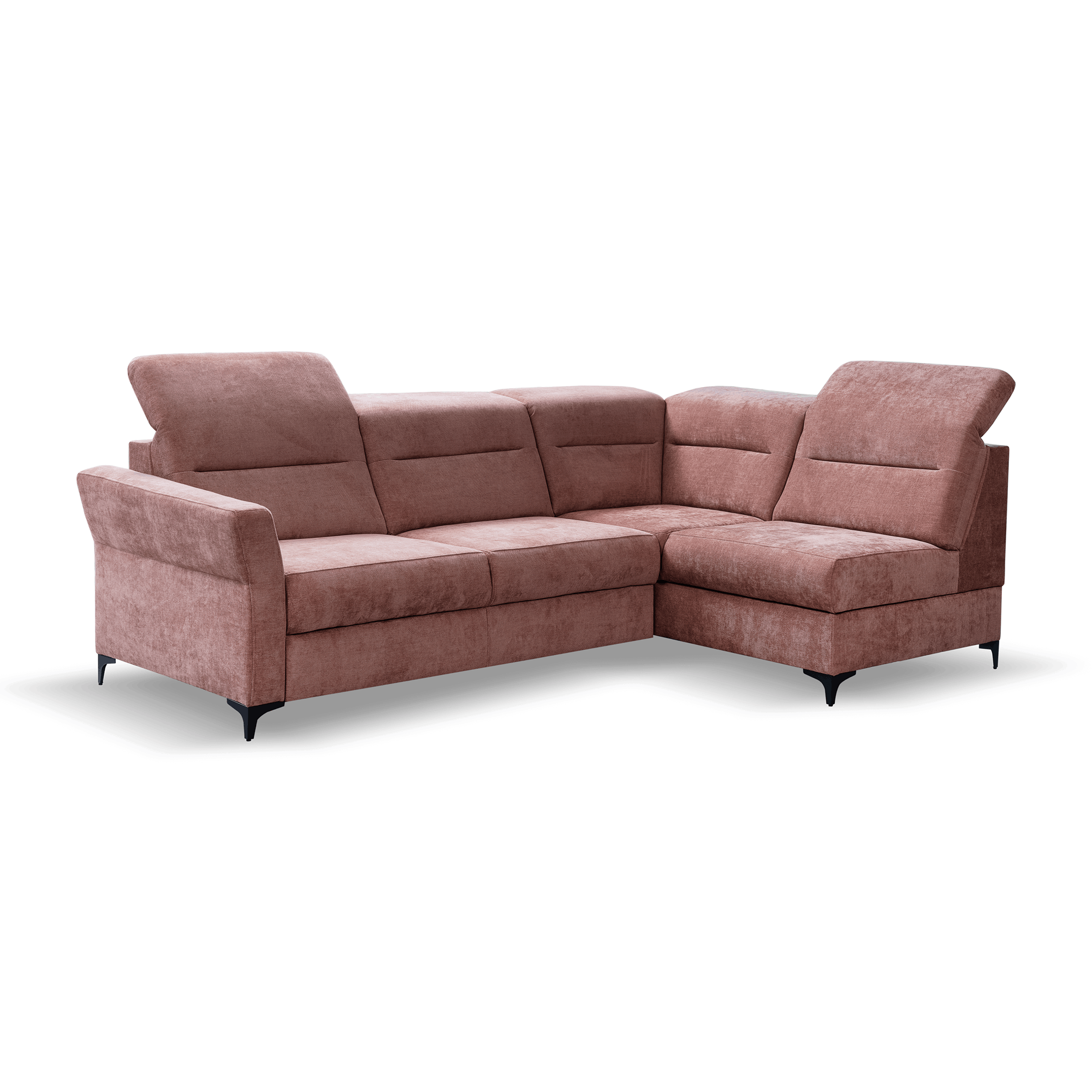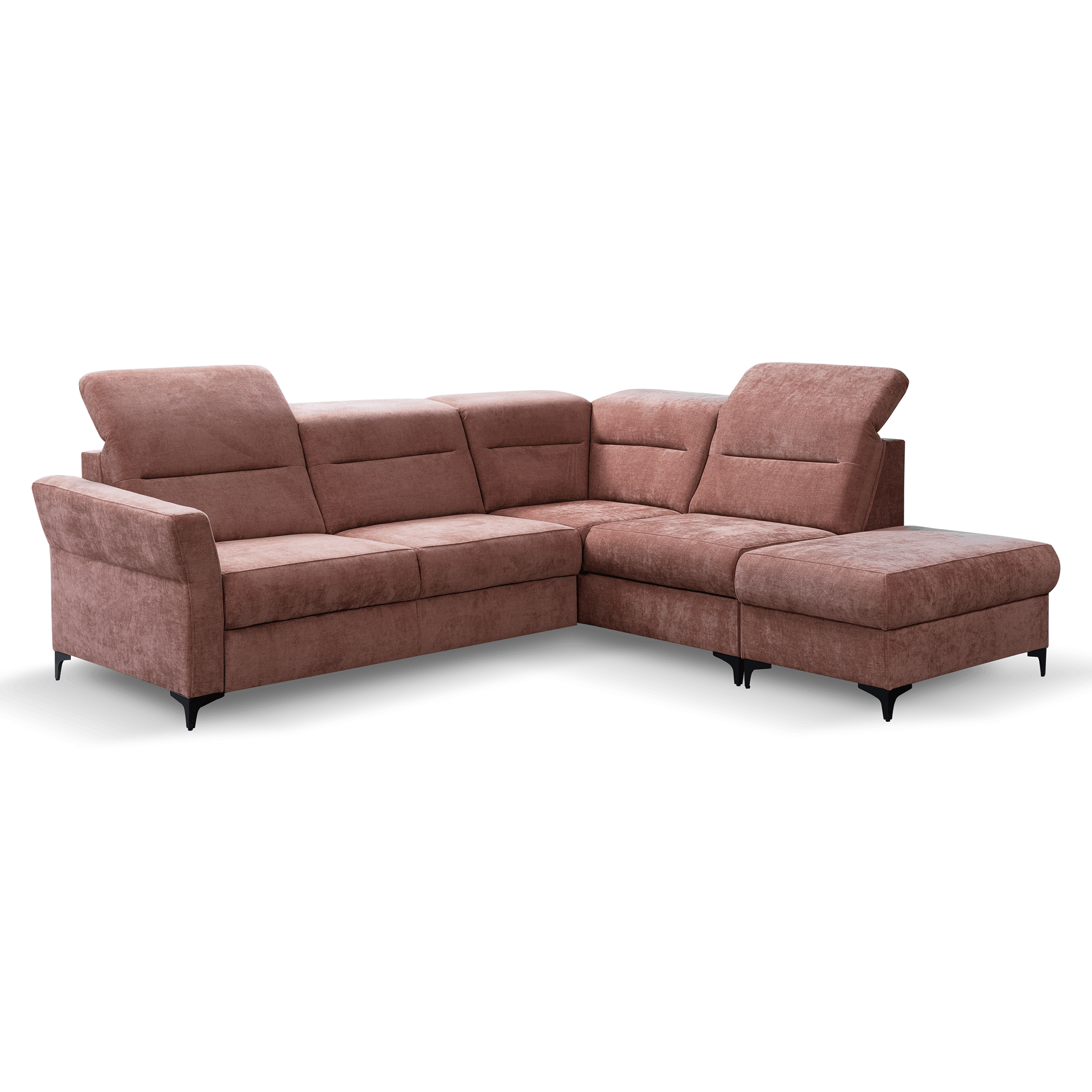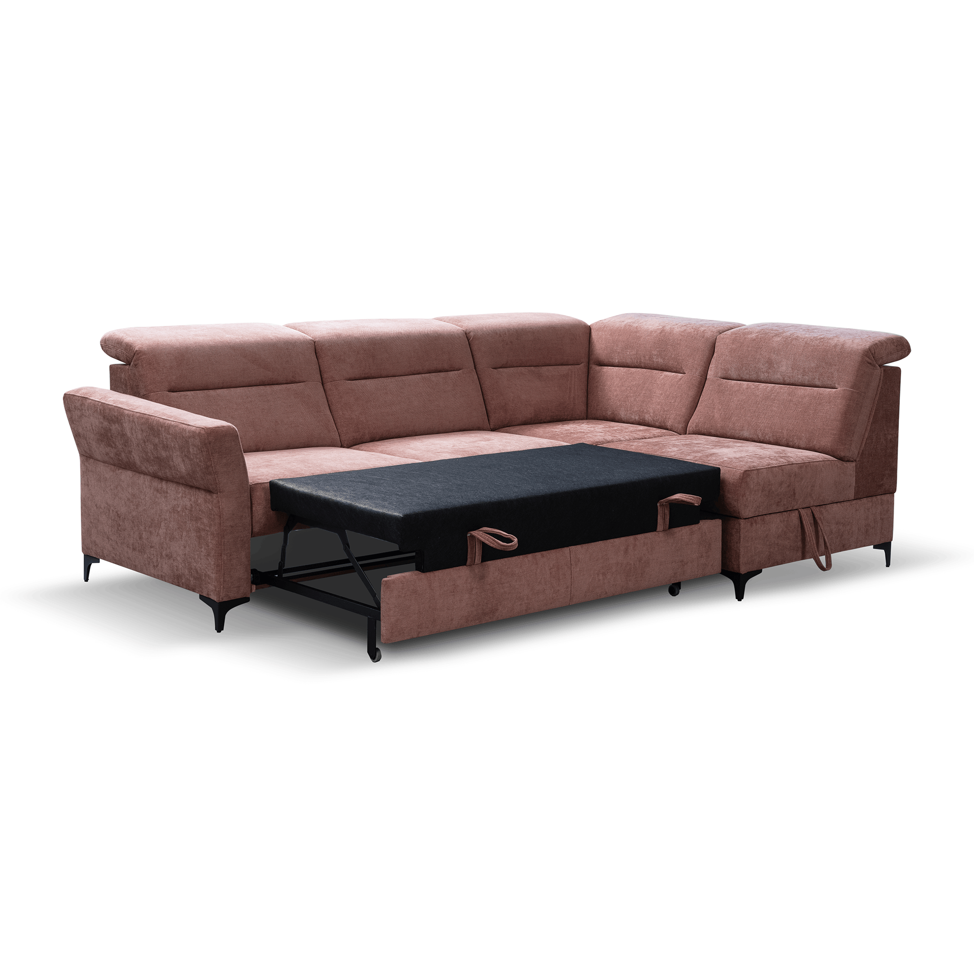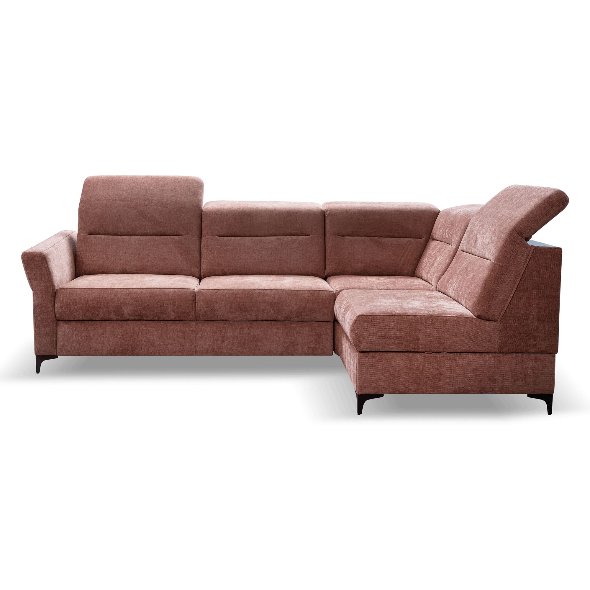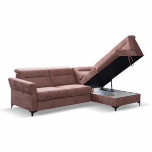 Ruchome zagłówki umożliwiają dostosowanie pozycji do indywidualnych preferencji, zapewniając maksymalny wypoczynek. Dzięki funkcji spania narożnik Poko w łatwy sposób zamienia się w wygodne łóżko, a pojemnik na pościel ułatwia przechowywanie tekstyliów, dbając o porządek w salonie.