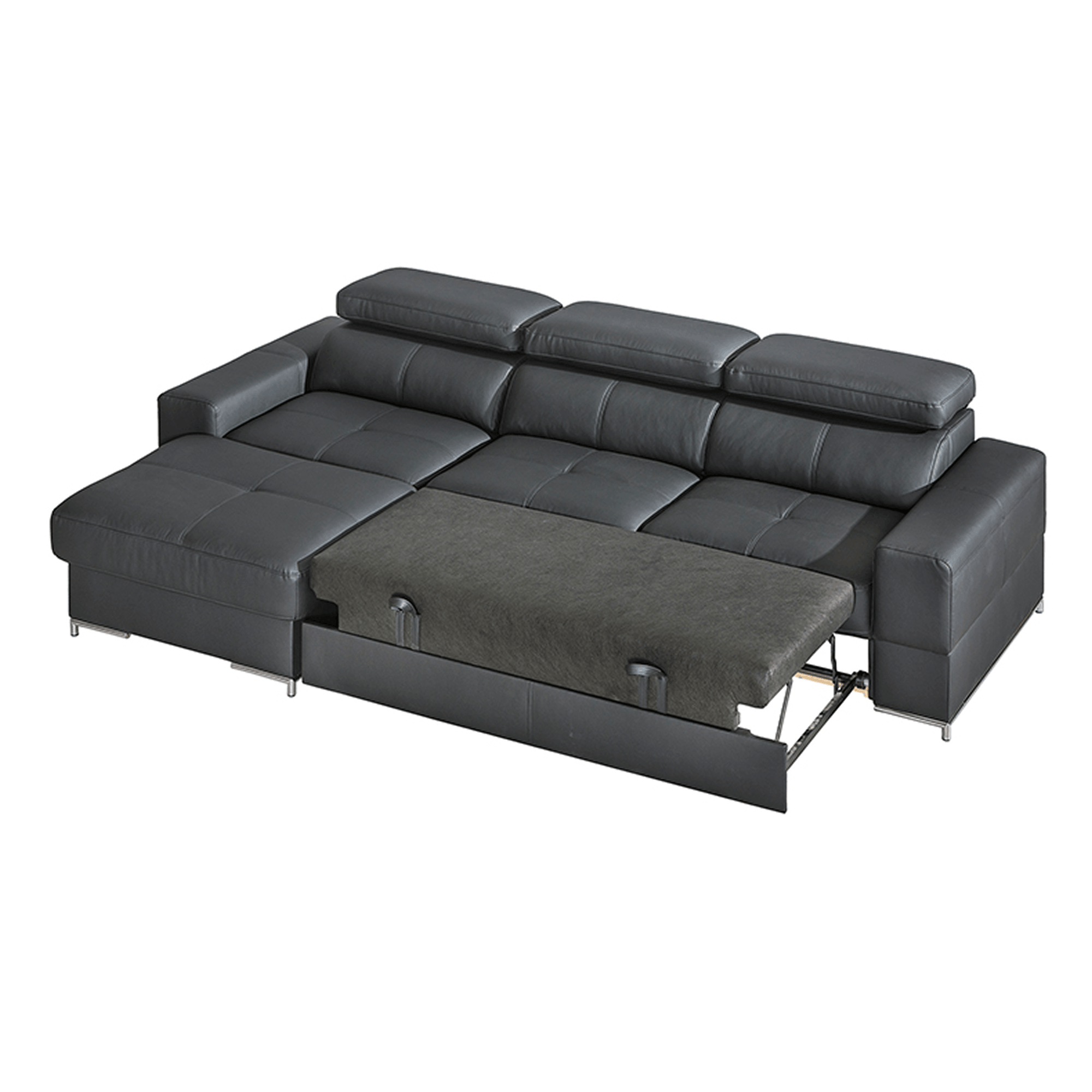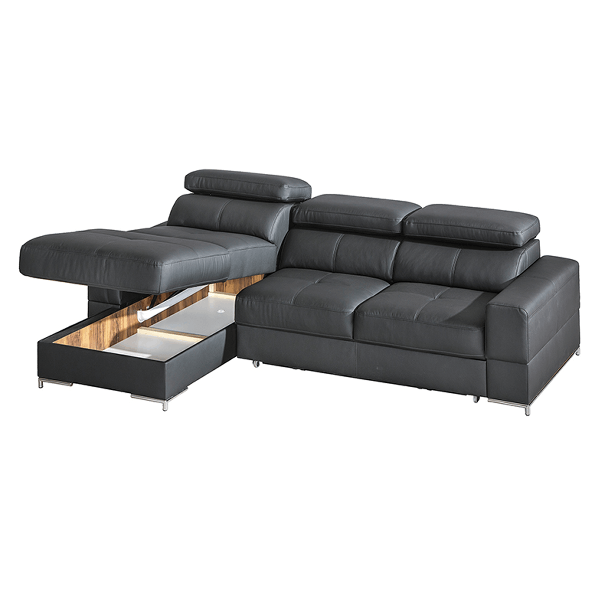 Model ten, podobnie jak pozostałe elementy kolekcji, wyposażony jest w ruchome zagłówki, które pozwalają dostosować pozycję do własnych potrzeb, funkcję spania, dzięki której można go łatwo przekształcić w dodatkowe miejsce do odpoczynku, oraz pojemnik na pościel, który zapewnia dodatkową przestrzeń do przechowywania pościeli