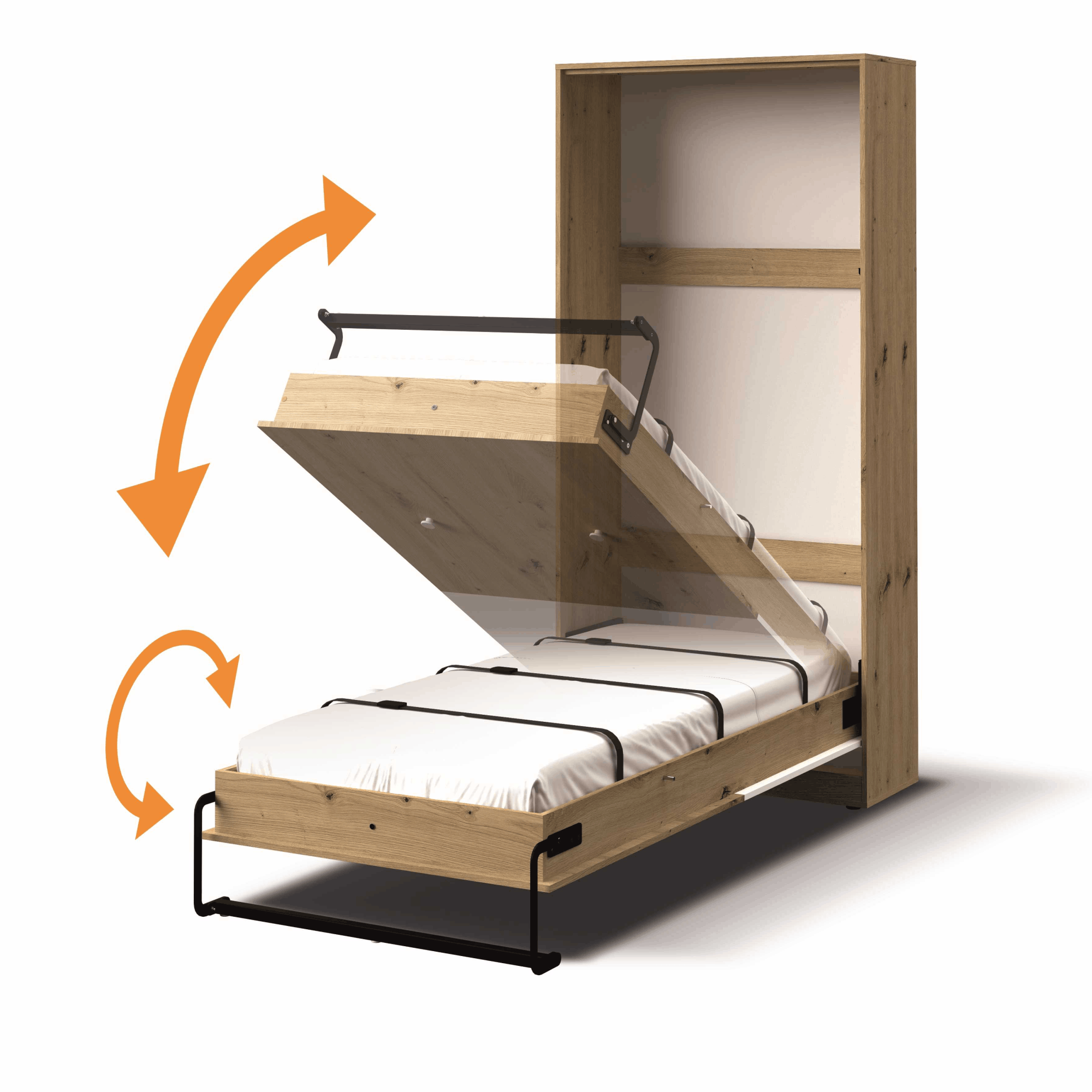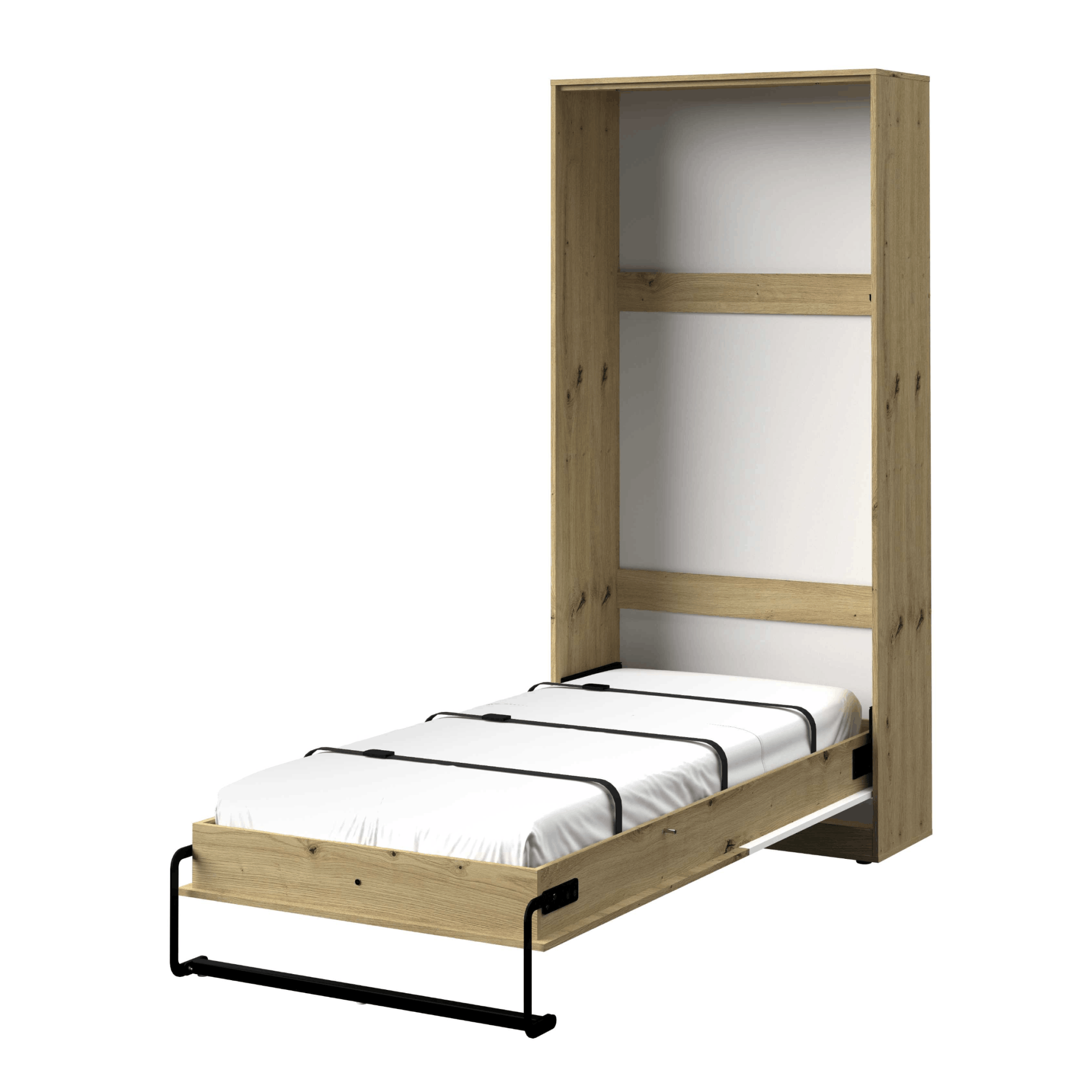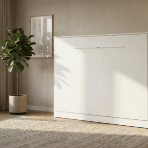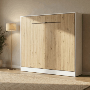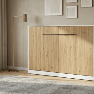 Półkotapczan Argo 90 × 200 cm to praktyczne rozwiązanie, które pozwala maksymalnie wykorzystać przestrzeń pomieszczenia. W ciągu dnia zajmuje niewiele miejsca i pozostaje estetyczną, spójną częścią zabudowy, a wieczorem w kilka chwil zamienia się w wygodne łóżko o pełnowymiarowej powierzchni spania 90 × 200 cm.