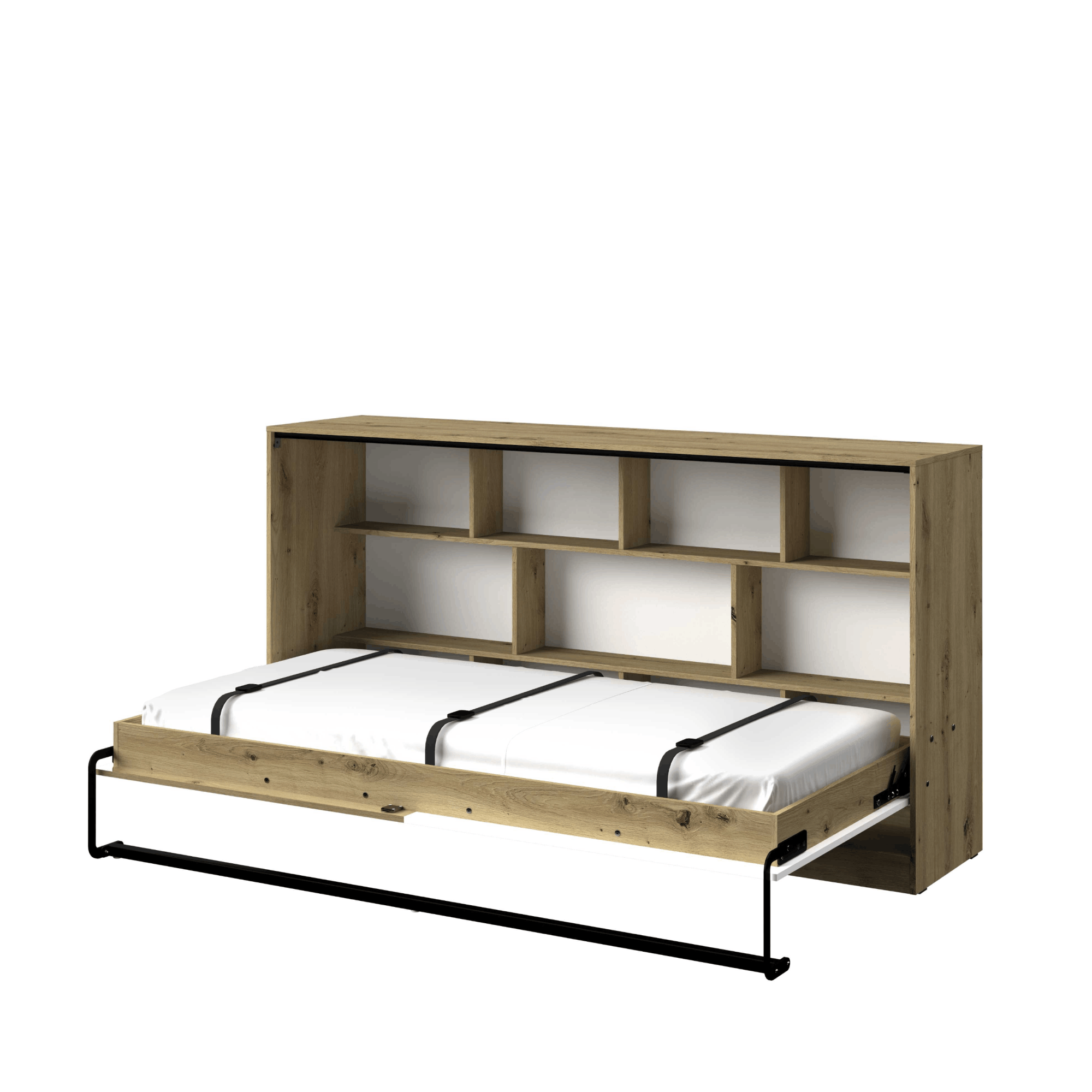 Półkotapczan Argo 90 × 200 cm to praktyczne rozwiązanie, które pozwala maksymalnie wykorzystać przestrzeń pomieszczenia. W ciągu dnia zajmuje niewiele miejsca i pozostaje estetyczną, spójną częścią zabudowy, a wieczorem w kilka chwil zamienia się w wygodne łóżko o pełnowymiarowej powierzchni spania 90 × 200 cm.