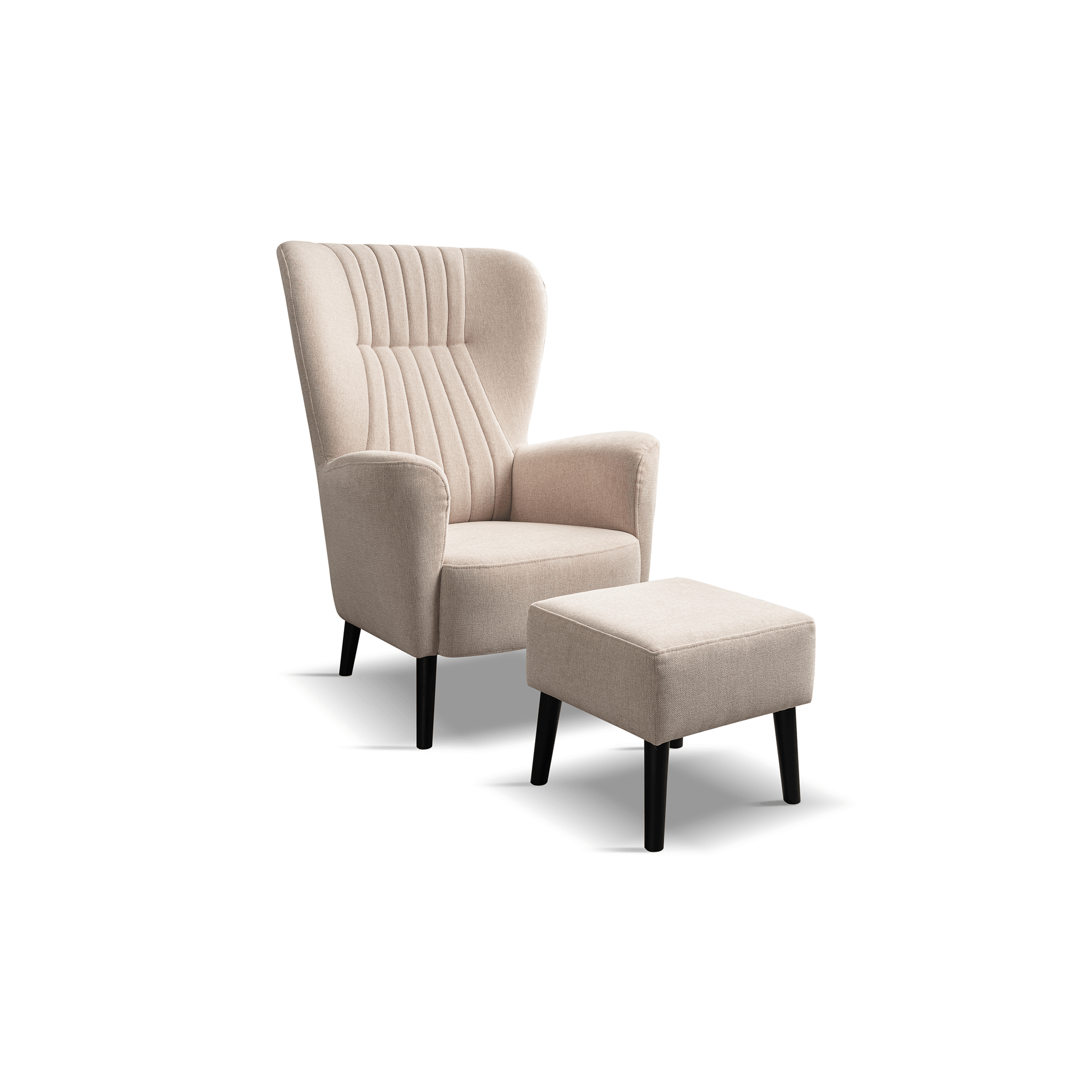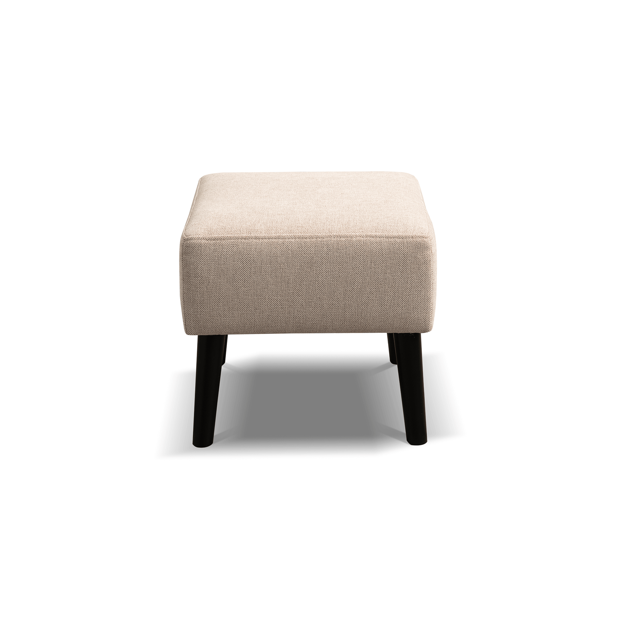 Konstrukcja oparta na sprężystej piance poliuretanowej zapewnia wygodne podparcie dla nóg, a jednocześnie sprawia, że pufa pozostaje niezwykle lekka i łatwa do przenoszenia. Smukłe, czarne, drewniane nogi nadają jej stabilności i harmonijnie dopełniają całą kolekcje.