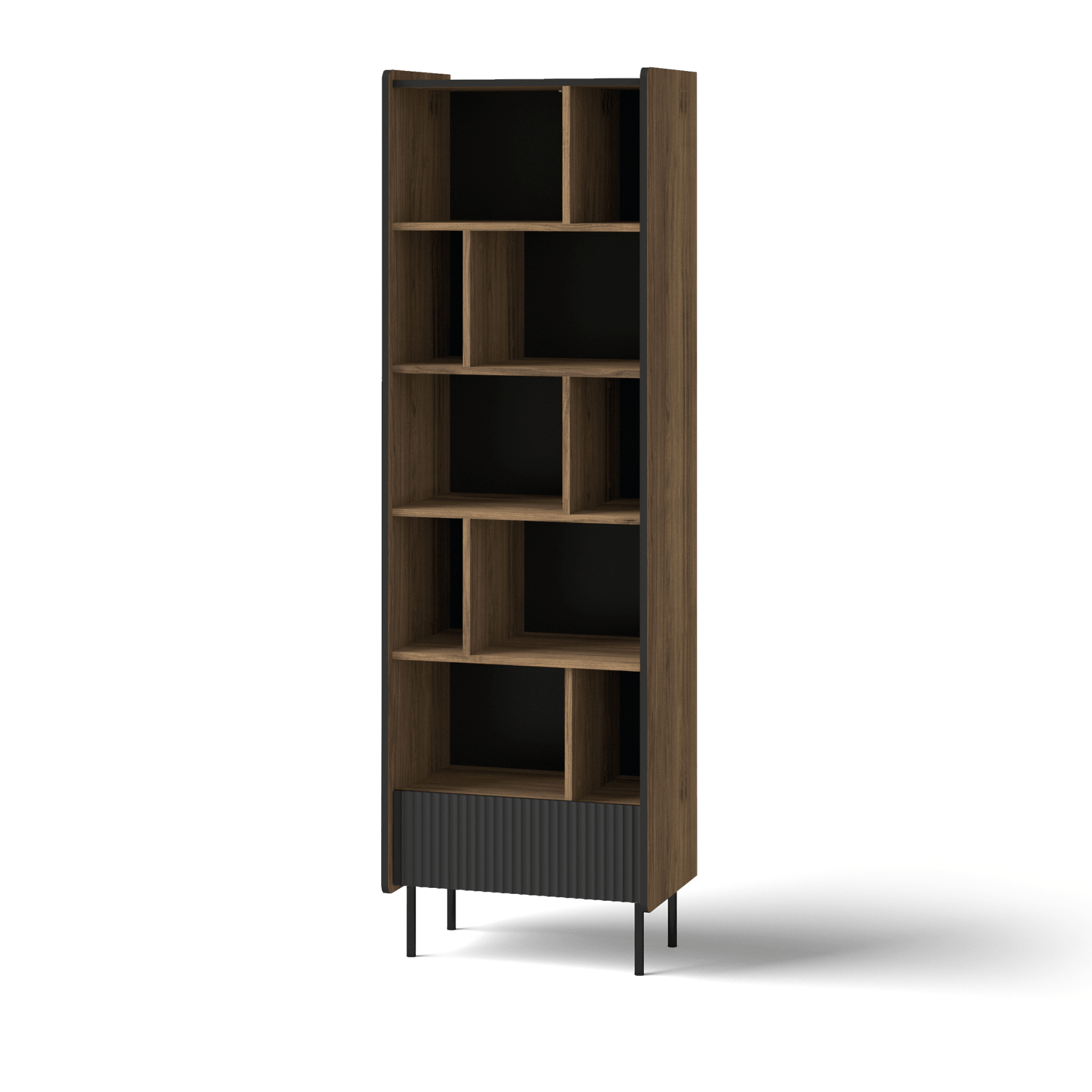 Royale to nowoczesna kolekcja mebli, łącząca styl i funkcjonalność. Charakteryzuje się eleganckim połączeniem kolorów: orzech Warmia, czarny mat, oraz dekoru San Sebastian. Ryflowane fronty i metalowe nogi nadają meblom nowoczesnego, prestiżowego wyglądu. Kolekcja oferuje szeroki wybór elementów, takich jak komody, szafki RTV, stoły, łóżka i biurka, które doskonale sprawdzą się w każdym pomieszczeniu. Royale to idealne rozwiązanie dla osób ceniących styl, wysoką jakość i praktyczne zastosowanie.