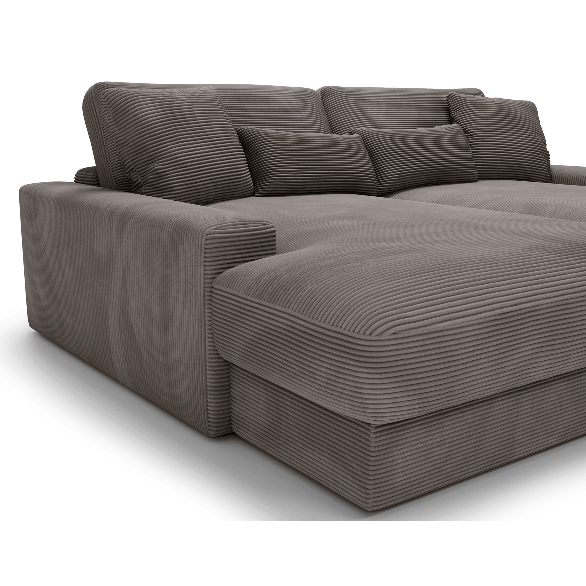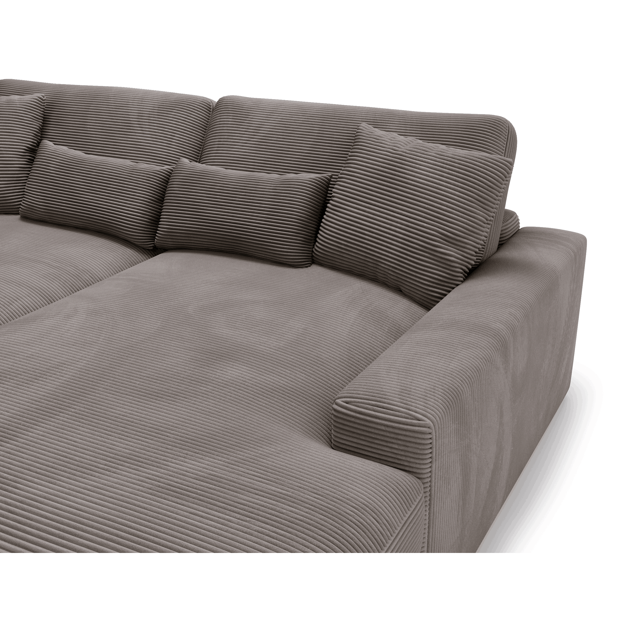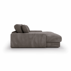 Obicie z miękkiej sztruksowej tkaniny nadaje Sofie Grand niepowtarzalny, ciepły charakter. Materiał ten świetnie odnajduje się zarówno w aranżacjach skandynawskich, jak i bardziej swobodnych, inspirowanych stylem vintage czy boho. Sofa prezentuje się pięknie w każdym ustawieniu, zarówno pod ścianą, jak i jako centralny punkt salonu, dzięki tapicerowanemu tyłowi.