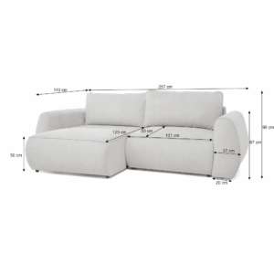 Dzięki systemowi rozkładania typu DL w prosty i szybki sposób zamienisz sofę w przestronne łóżko. Dodatkowym atutem są aż dwa pojemniki na pościel, które pomogą utrzymać porządek w salonie.