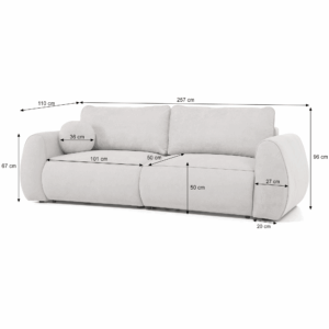 Siedzisko wykonane na bazie sprężyn falistych oraz bonellowych zapewnia odpowiednią sprężystość, trwałość i wygodę zarówno podczas siedzenia, jak i spania. Miękkie poduszki oparciowe zwiększają komfort i pozwalają się naprawdę zrelaksować.