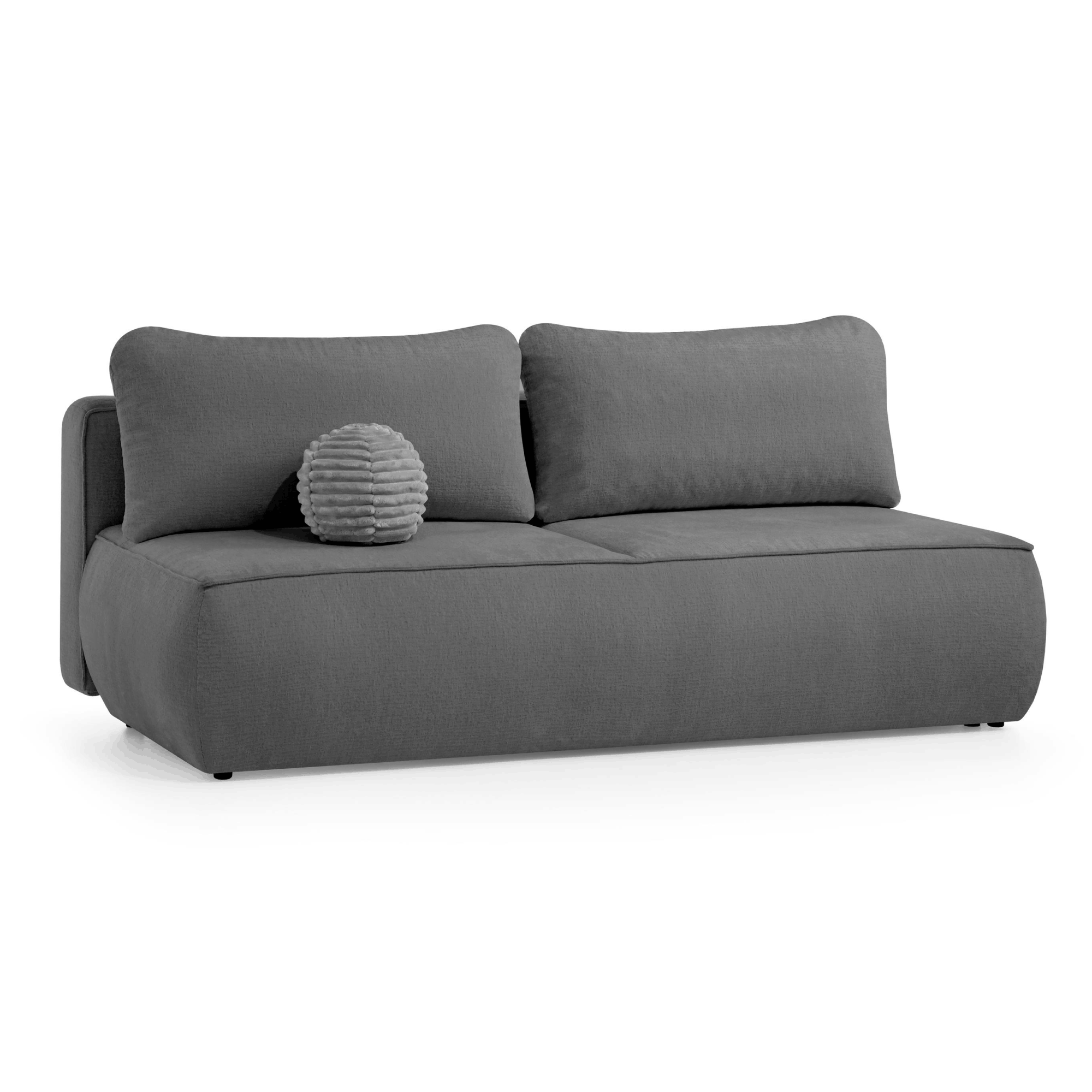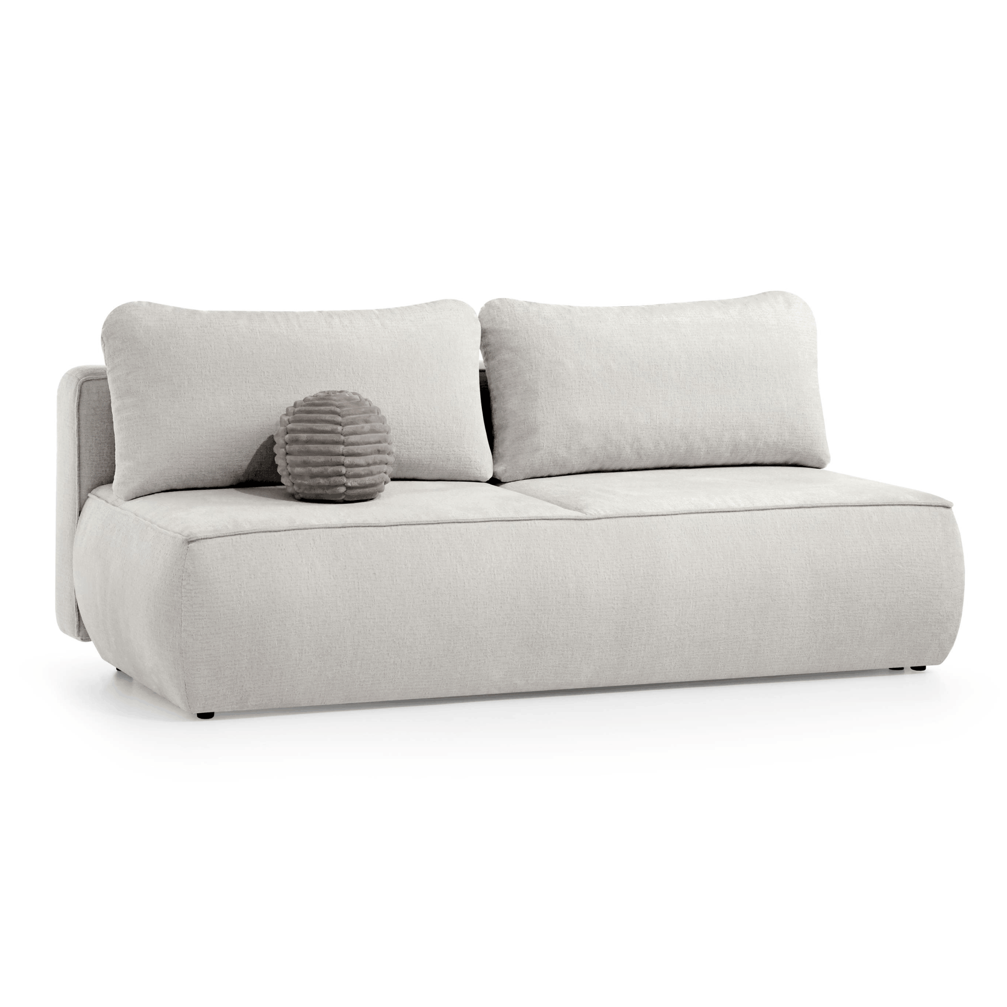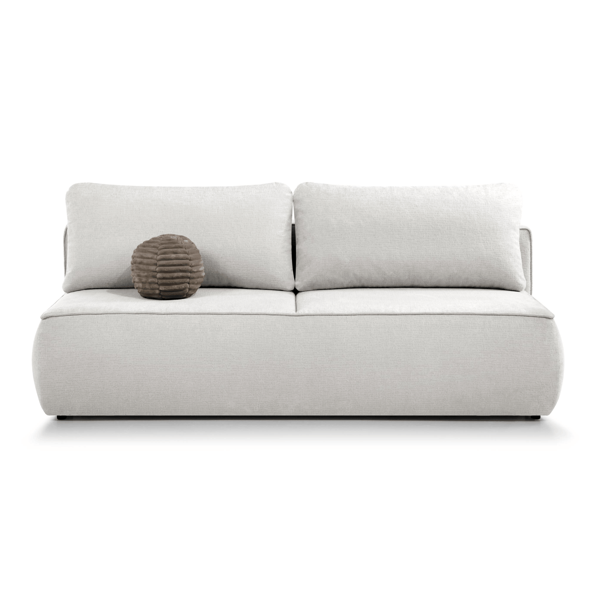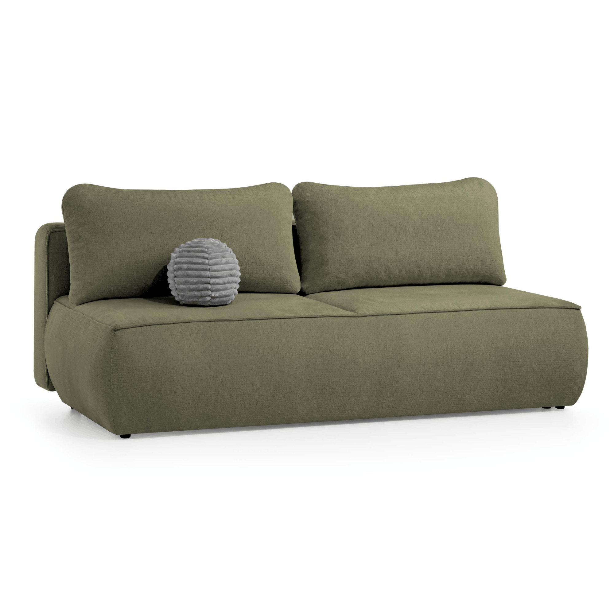 Do sofy dołączona jest okrągła poduszka tapicerowana, która stanowi stylowy dodatek.