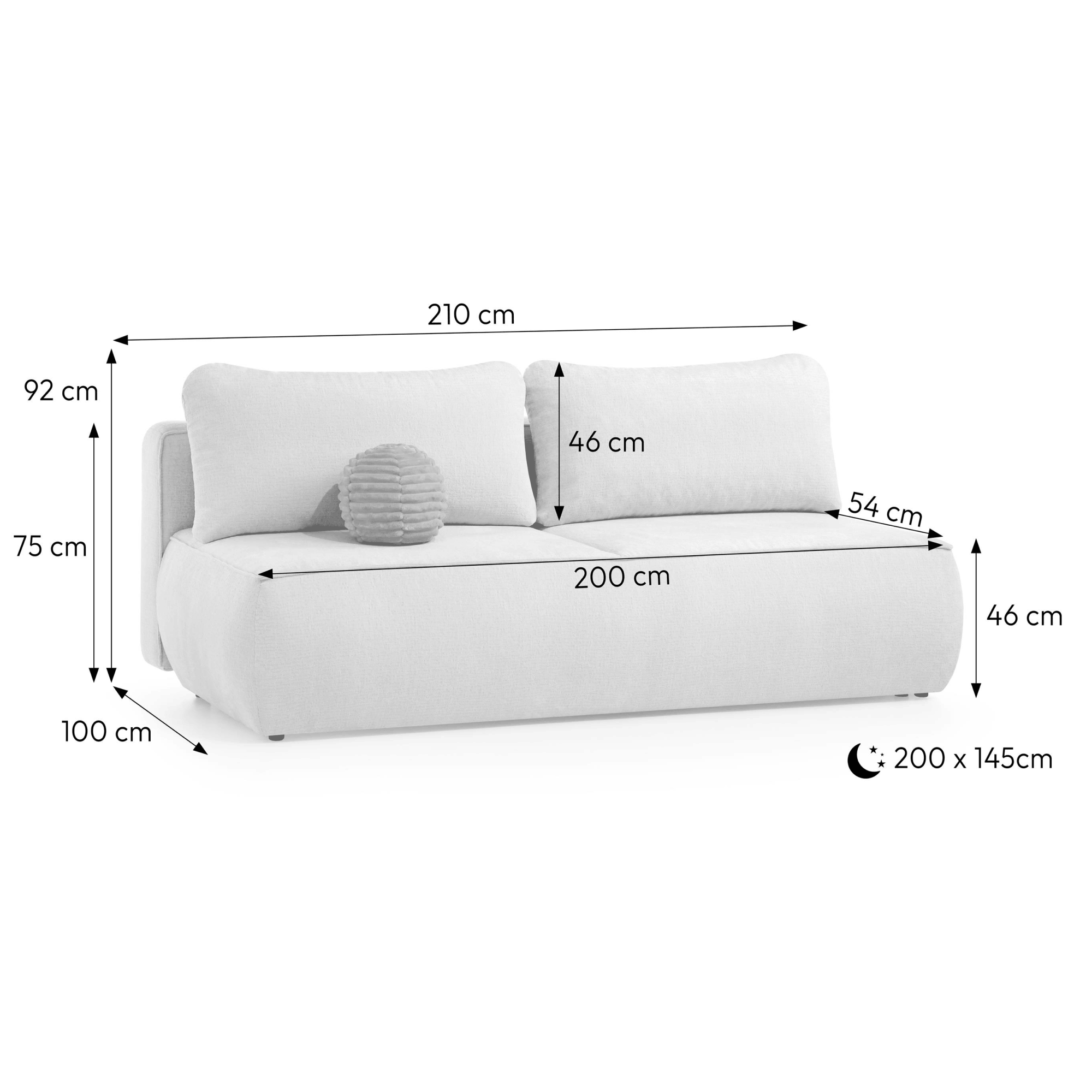 ☑️ funkcja spania: 200 x 145 cm