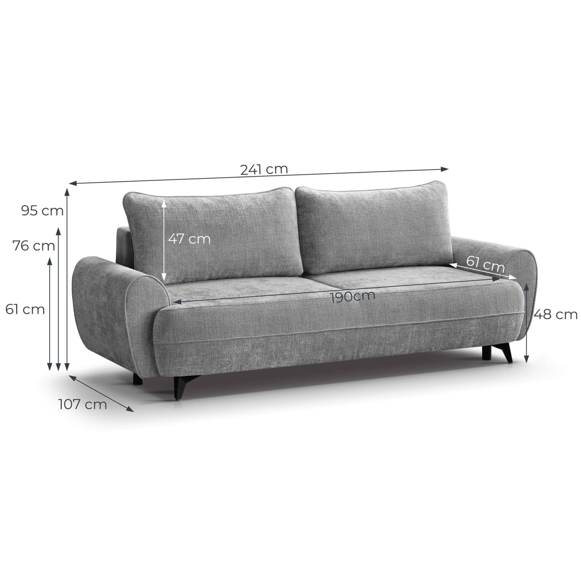Siedzisko wykonane na sprężynach falistych oraz piance zapewnia odpowiednie podparcie i wygodę. Sofa jest przyjemnie miękka, a jednocześnie stabilna, dzięki czemu sprawdzi się zarówno do siedzenia, jak i relaksu.