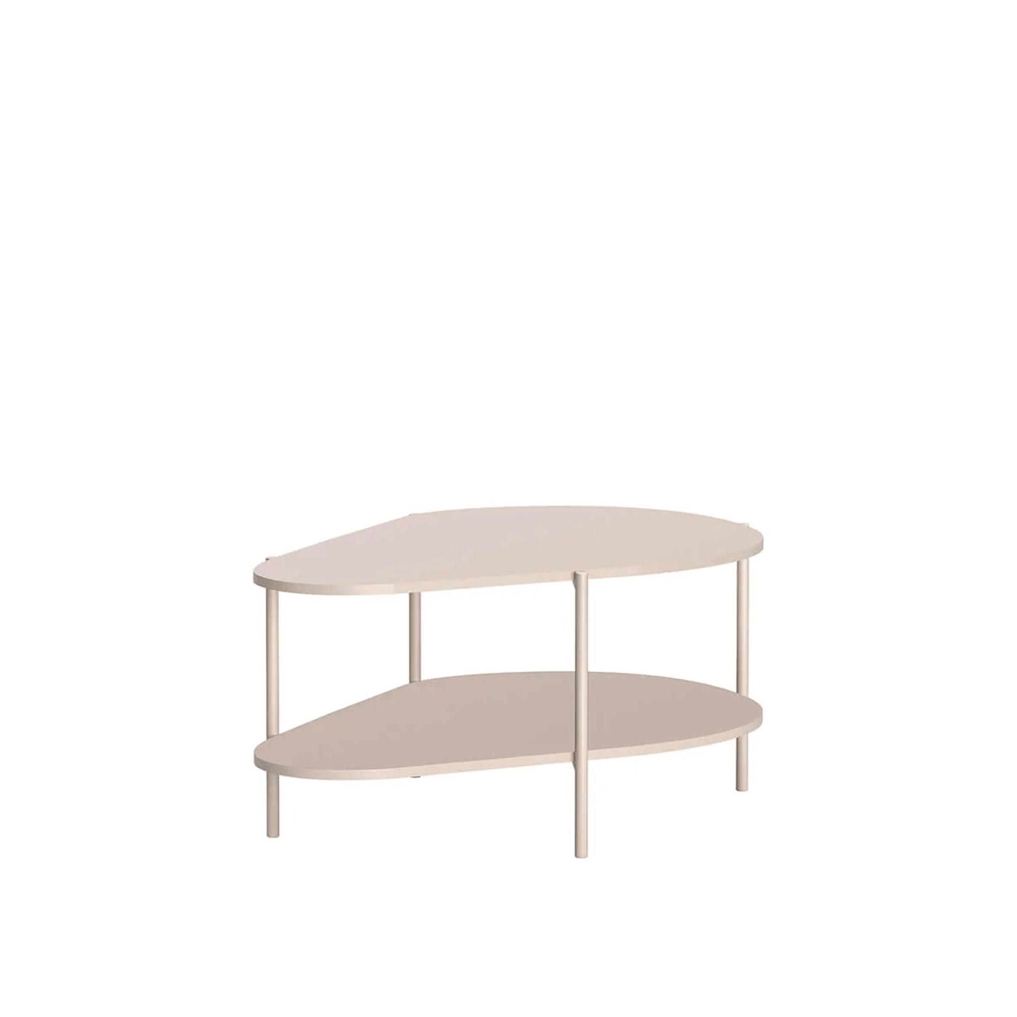 Jego organiczny kształt i zaokrąglone krawędzie nadają wnętrzu lekkości, a dwupoziomowa konstrukcja zapewnia dodatkowe miejsce na książki, dekoracje czy drobiazgi. Solidne wykonanie i minimalistyczny design sprawiają, że stolik doskonale sprawdzi się zarówno w nowoczesnych, jak i industrialnych aranżacjach.