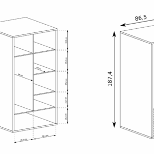 W dolnej części znajduje się pojemna szuflada, a praktyczny układ wnętrza ułatwia organizację ubrań. Po jednej stronie znajdują się wygodne półki, natomiast druga część została wyposażona w drążek na wieszaki oraz dodatkową półkę.