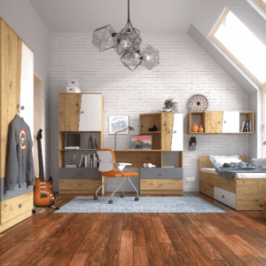Kolekcja Argo to nowoczesne meble stworzone z myślą o funkcjonalności i estetyce. Proste, geometryczne bryły oraz modne połączenie dekoru drewna z gładkimi frontami sprawiają, że zestaw doskonale pasuje do salonu, pokoju młodzieżowego czy domowego biura.