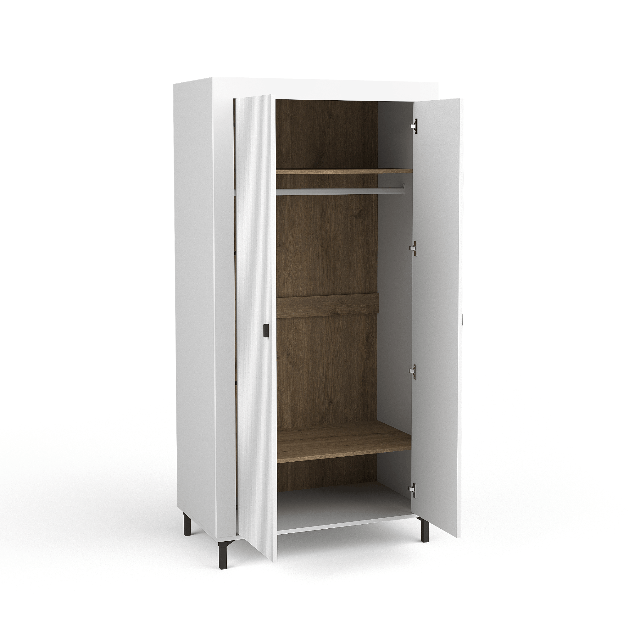 Kolekcja Naro to nowoczesna linia mebli, która wyróżnia się eleganckim designem i wysoką funkcjonalnością, idealnie pasującą do salonu, pokoju dziennego czy sypialni. Charakterystycznym elementem tej kolekcji są wysokie nóżki, gustowne uchwyty oraz proste, masywne bryły dostępne w kolorze bieli, czerni i kaszmiru, wzbogacone o akcenty w odcieniu dębu wiskey. Efekt 3D, nadawany przez prążkowane fronty, podkreśla nowoczesność i styl mebli. Bogaty wybór elementów, takich jak komody, witryny, szafy, regały, ławy, stoliki nocne oraz szafki RTV, pozwala na indywidualne aranżacje wnętrz, dostosowane do potrzeb każdego pomieszczenia.