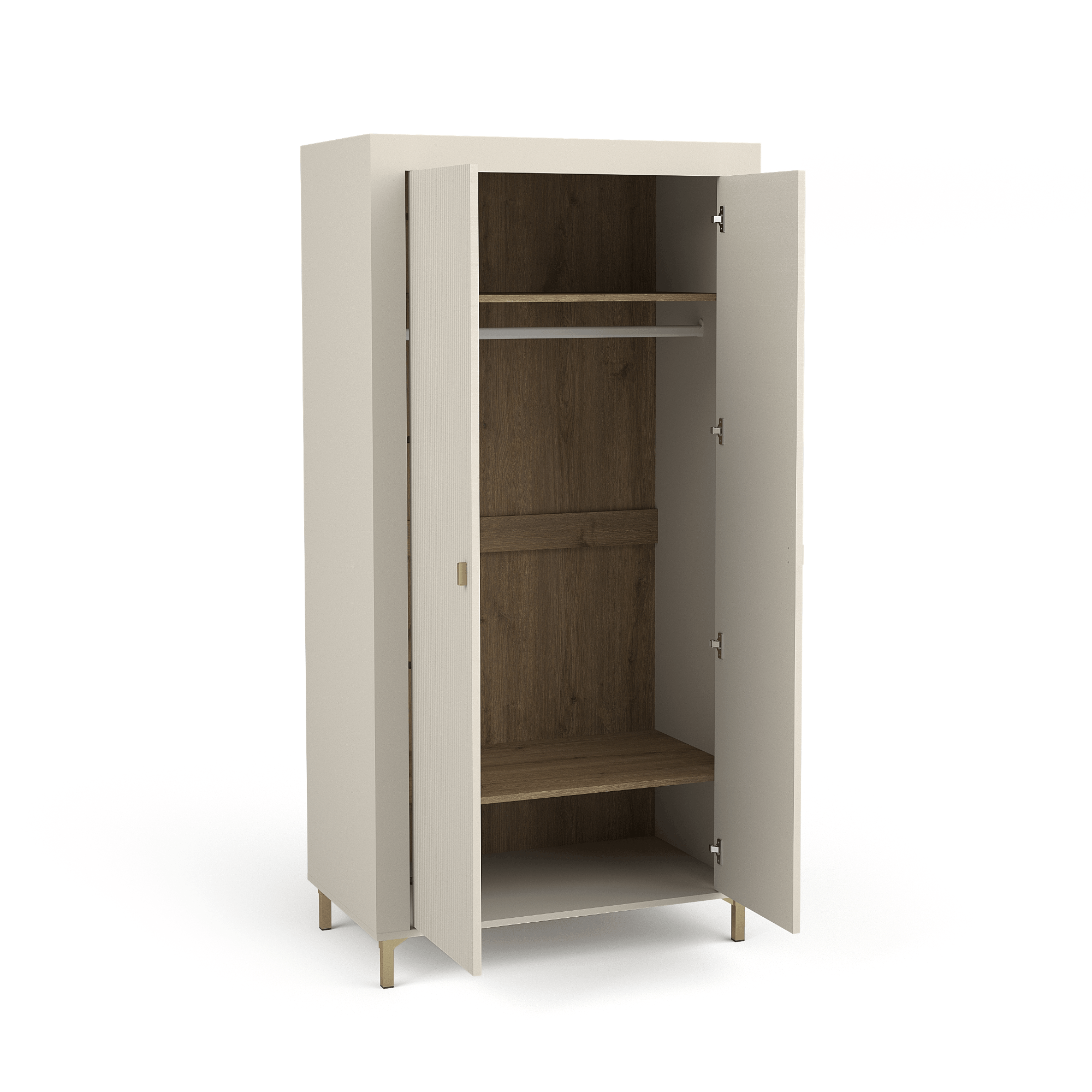 Kolekcja Naro to nowoczesna linia mebli, która wyróżnia się eleganckim designem i wysoką funkcjonalnością, idealnie pasującą do salonu, pokoju dziennego czy sypialni. Charakterystycznym elementem tej kolekcji są wysokie nóżki, gustowne uchwyty oraz proste, masywne bryły dostępne w kolorze bieli, czerni i kaszmiru, wzbogacone o akcenty w odcieniu dębu wiskey. Efekt 3D, nadawany przez prążkowane fronty, podkreśla nowoczesność i styl mebli. Bogaty wybór elementów, takich jak komody, witryny, szafy, regały, ławy, stoliki nocne oraz szafki RTV, pozwala na indywidualne aranżacje wnętrz, dostosowane do potrzeb każdego pomieszczenia.
