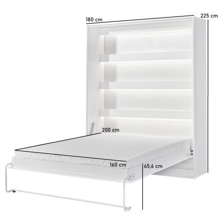 Półkotapczan pionowy Aston to nowoczesne rozwiązanie idealne dla małych mieszkań! Po złożeniu półkotapczan 160×200 cm zajmuje niewiele miejsca, idealnie wpasowując się w wystrój wnętrza. Wbudowane półki zwiększają funkcjonalność, a dodatkowe oświetlenie LED sprawia, że czytanie w łóżku jest wyjątkowo komfortowe. Wystarczy jeden ruch ręką, aby rozłożyć wygodne łóżko oferujące miejsce do regularnego spania!